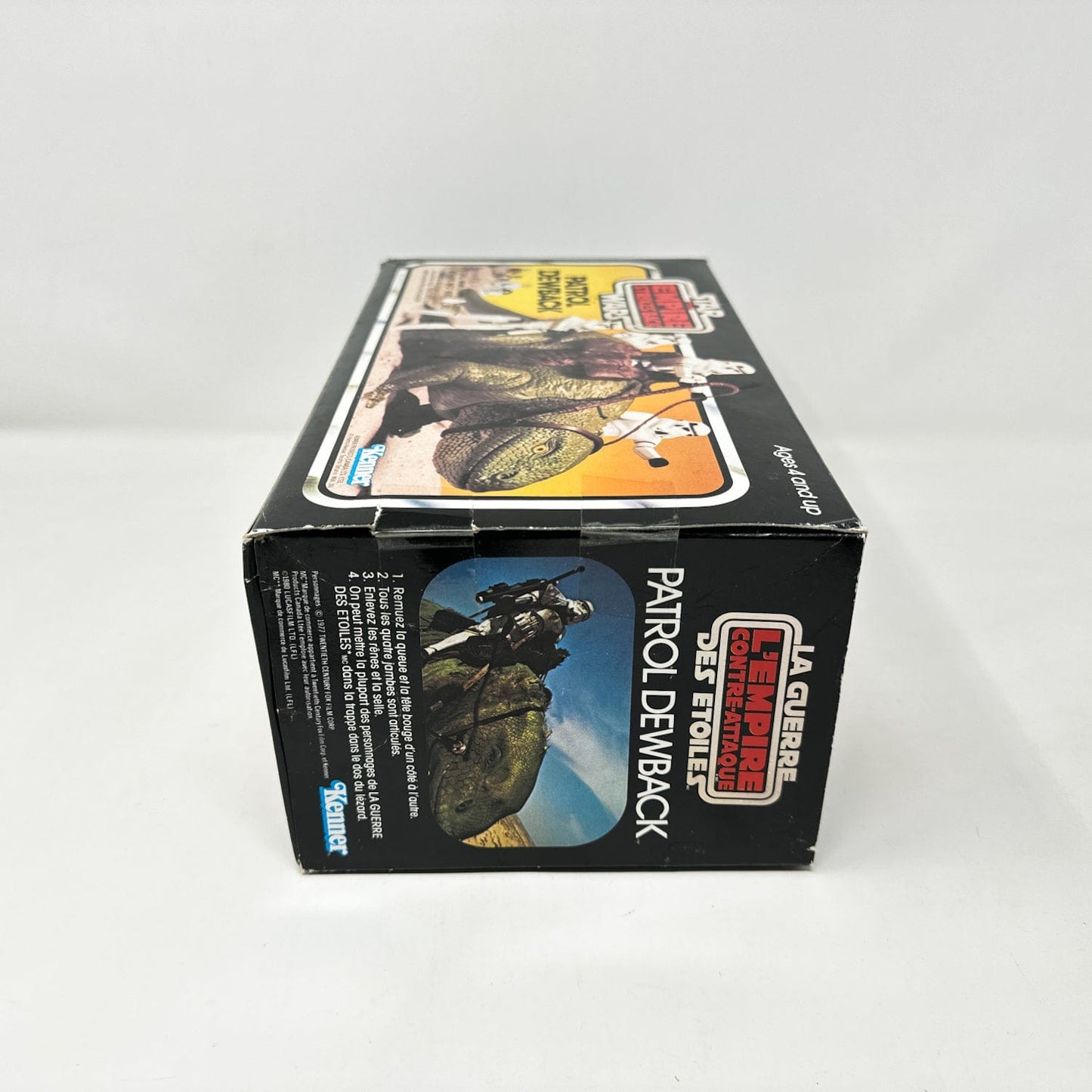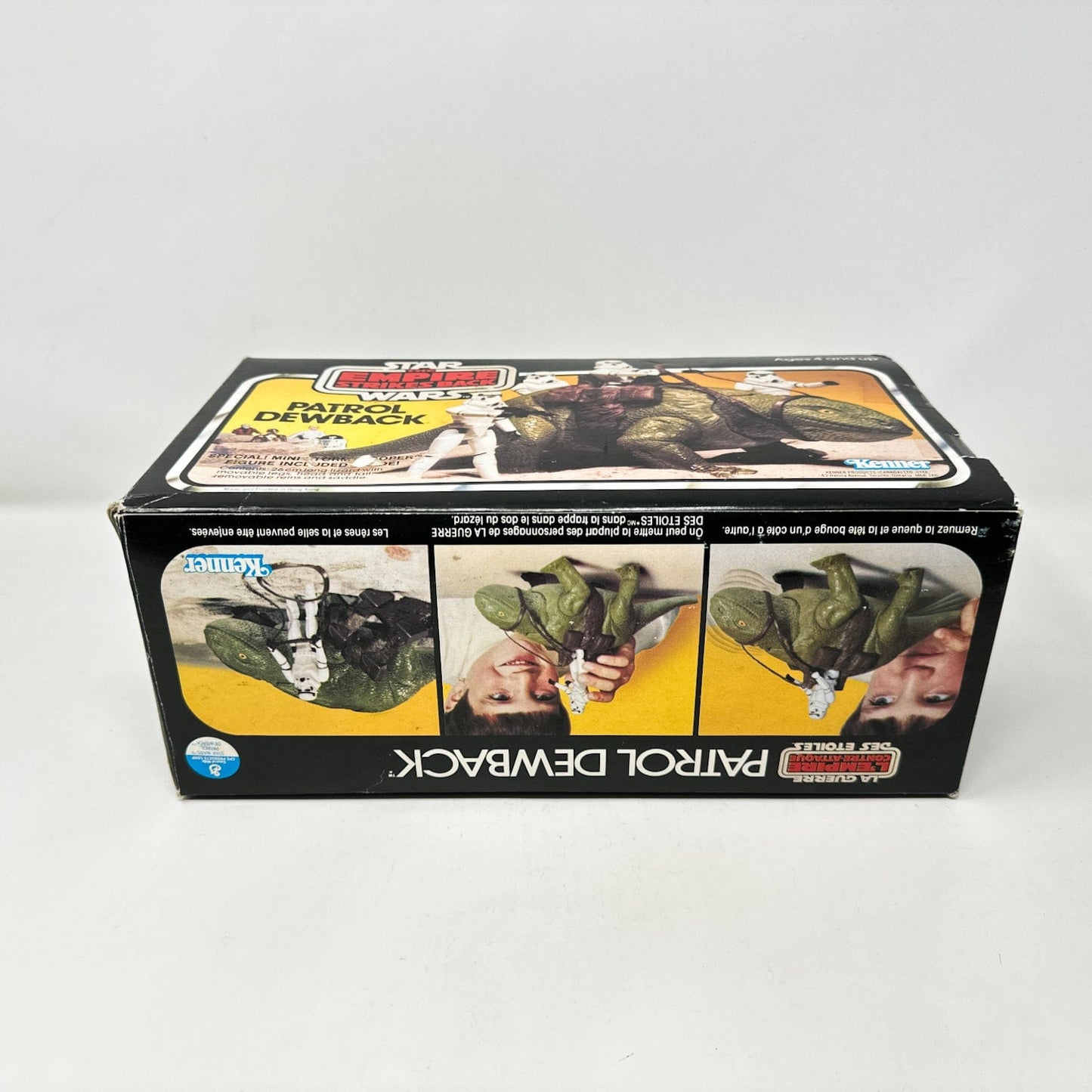 In Canada, the Patrol Dewback was released later and in Empire Strikes Back packaging. This variation of the packaging includes a white sticker covering special offer text. It's been removed on one side. There are other variations with different colours, with no sticker being the most common.