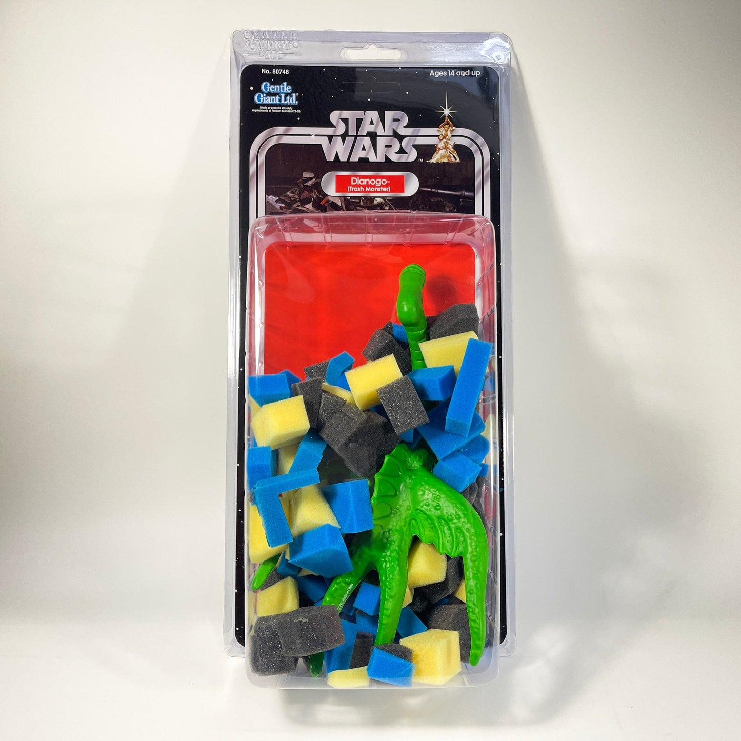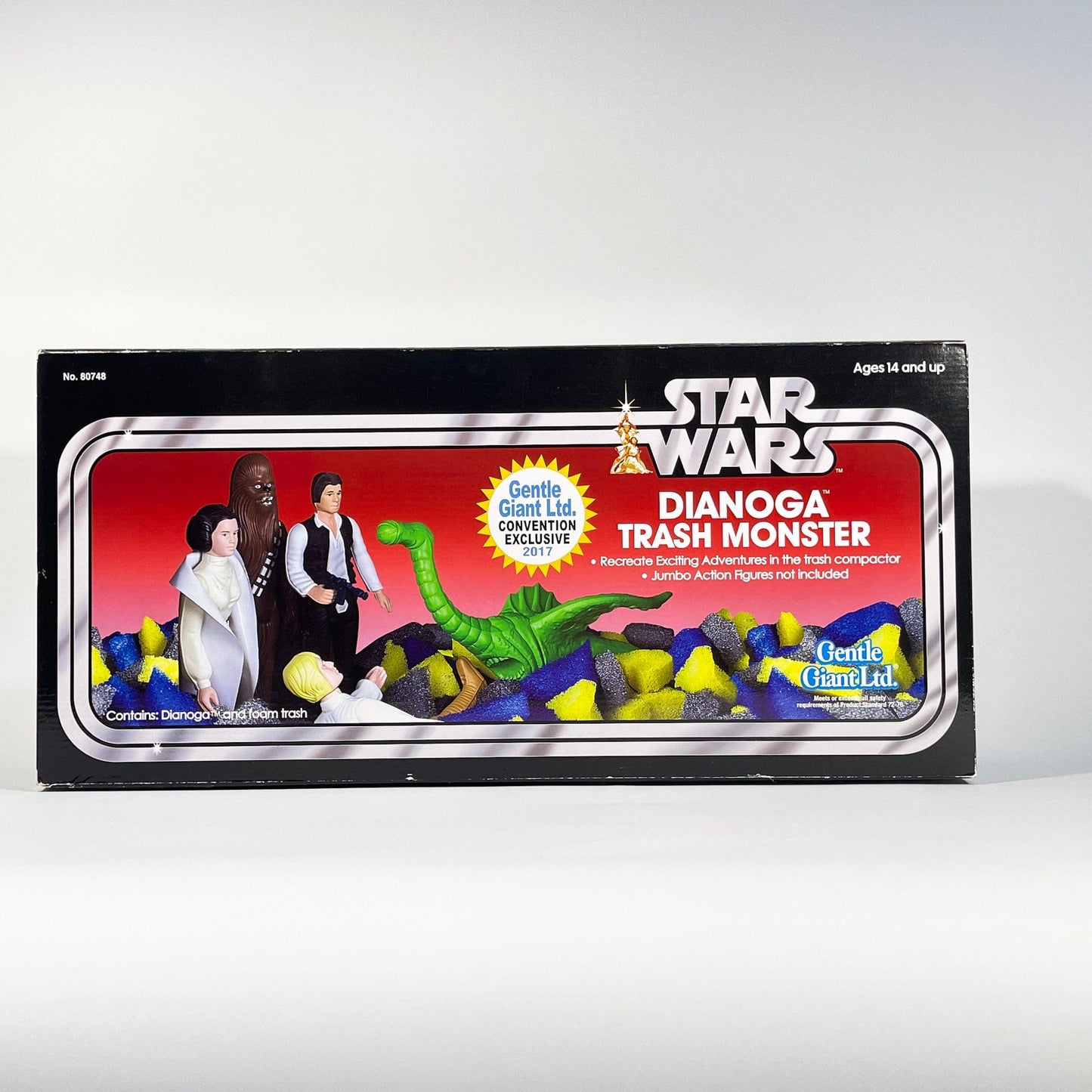 Gentle Giant Ltd.'s Jumbo Kenner Dianoga Trash Monster was made available only to attendees at the Star Wars Celebration Orlando 2017 event & 2017 San Diego Comic-Cons. This figure, which comes packed in a clamshell full of colorful foam "trash" is a 1/6 scale recreation of its classic Kenner counterpart.