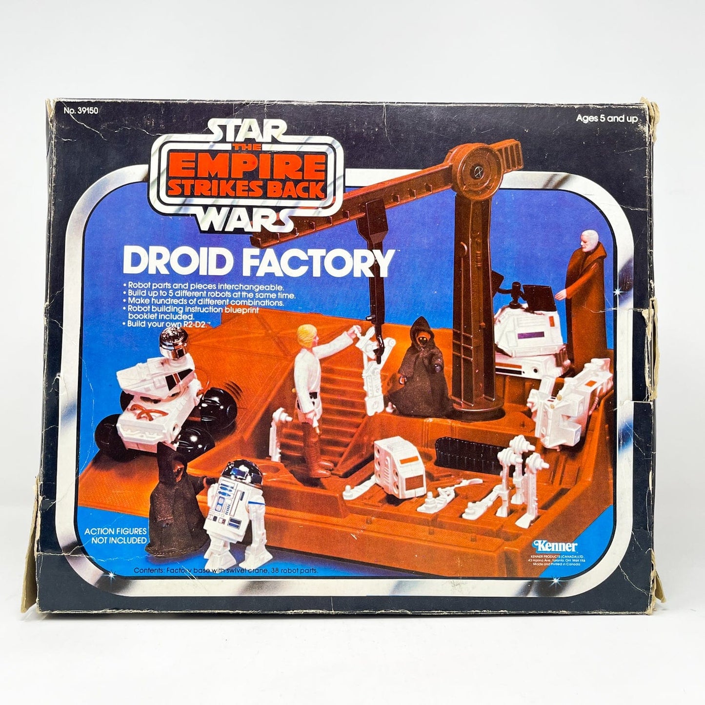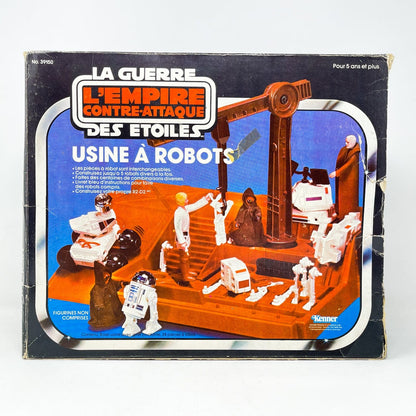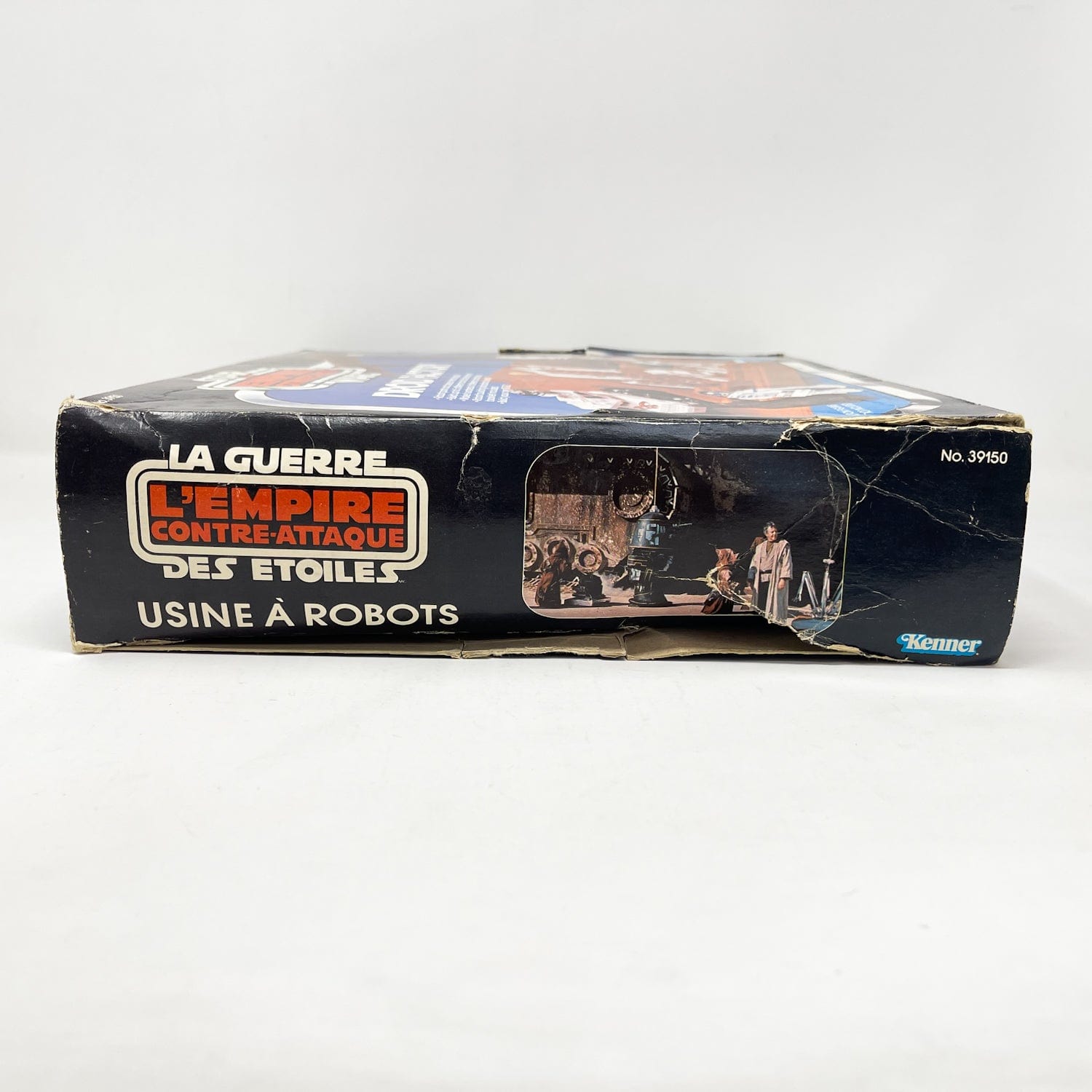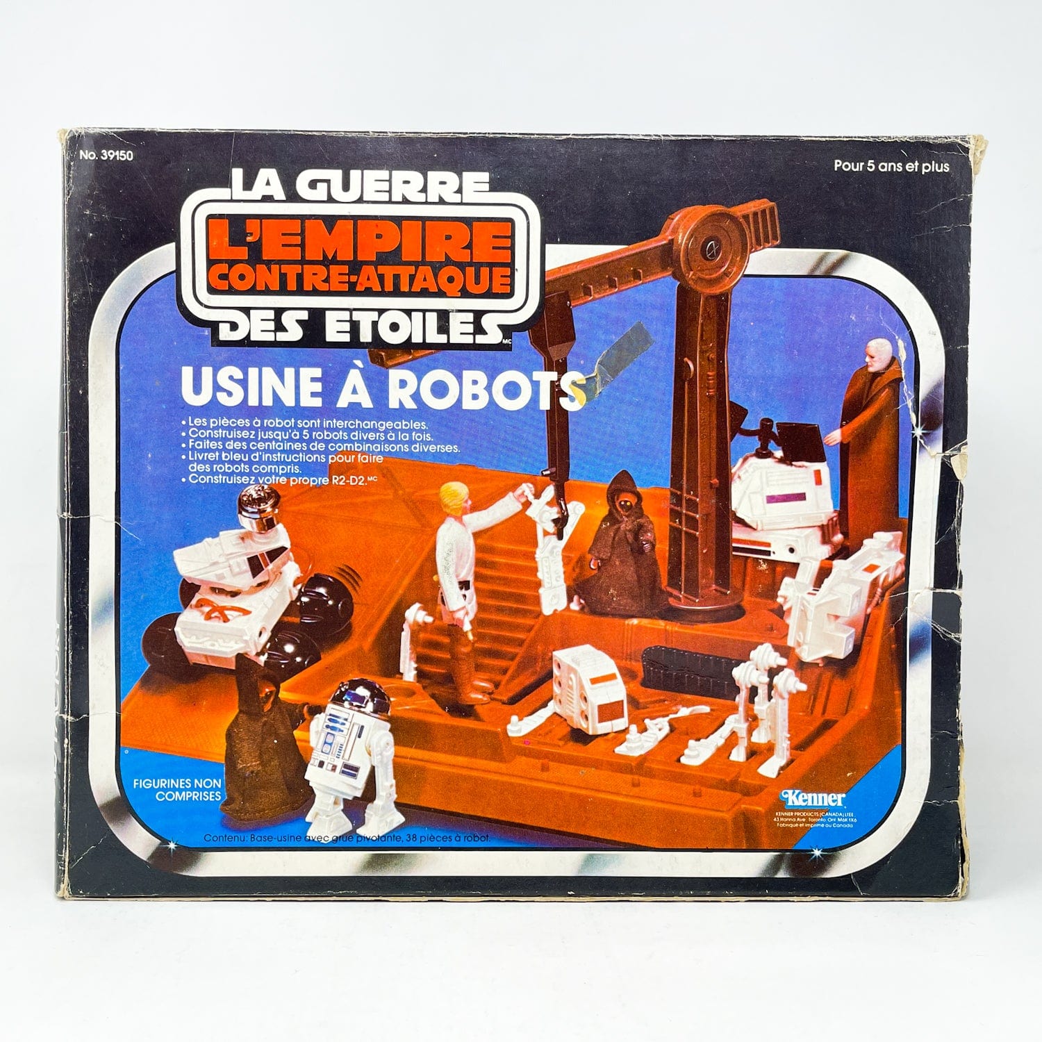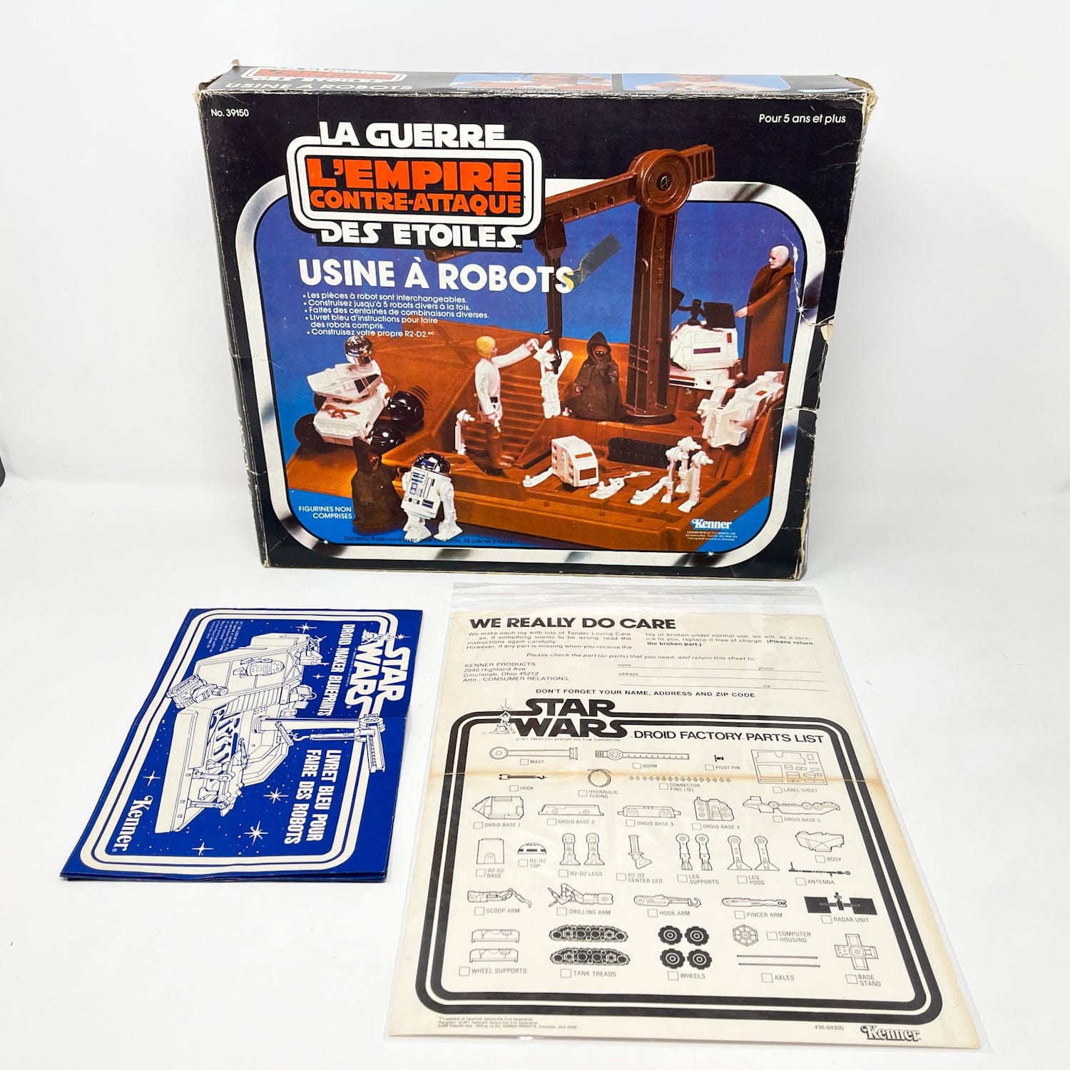 Kenner Canada Droid Factory 100% complete in French/English ESB box. Includes bilingual Blue Prints, instruction sheet. And... a very nice Droid Factory R2-D2. All the little parts are there including all 16 connectors, 3 orange rubber hoses and 2 metal axles.