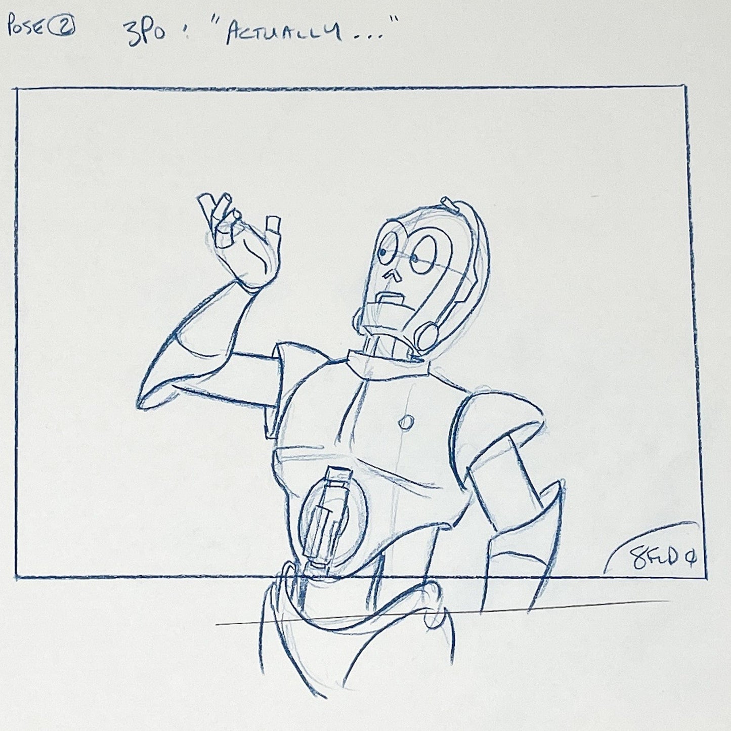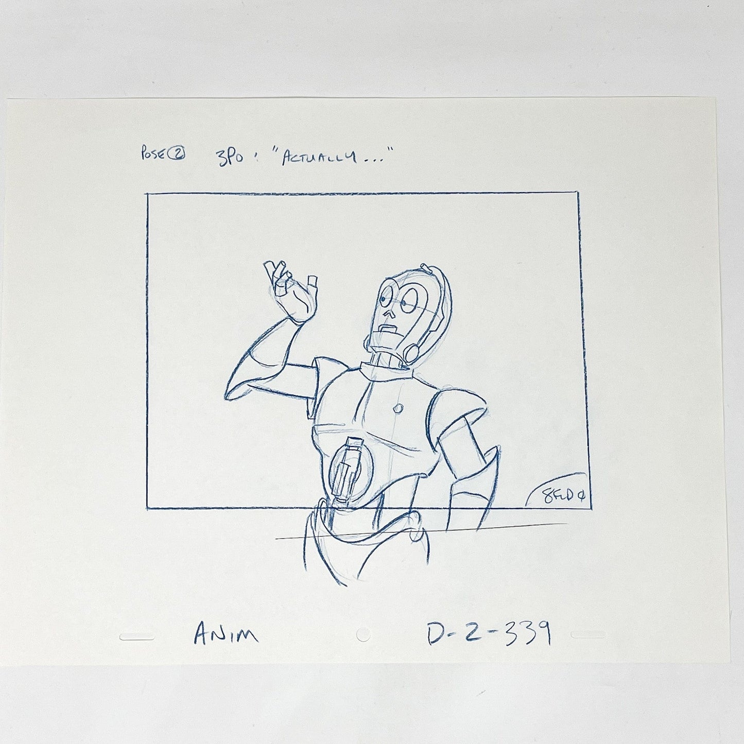 This is an original, hand-drawn Layout Pose by Nelvana artist Brian Lemay for the Droids Cartoon. Brian was a Layout Artist at Nelvana and worked on the DROIDS and EWOKS animated series, and kept this piece from his work in the 1980's.