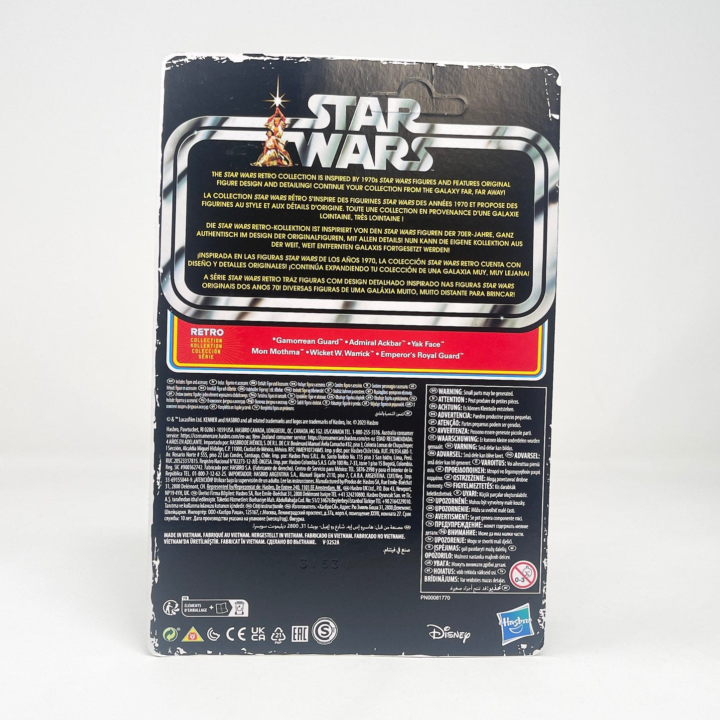 The Star Wars Retro Collection features design and detailing inspired by the original 1970s Star Wars action figures. The 3.75-inch-scale collector figures feature classic Kenner branding, as well as packaging treated with a weathered look. These Star Wars collector figures, featuring five points of articulation, can be displayed in action figure and vehicle collections.