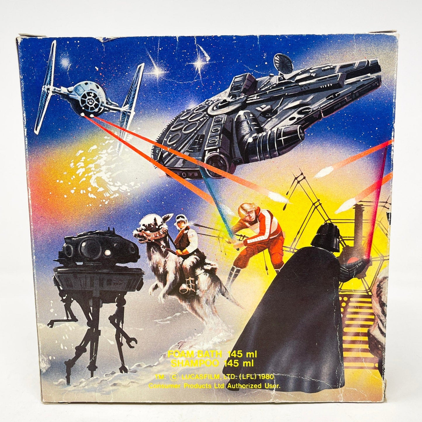 Empire Strikes Back bath set, complete in box. There's still liquid in the bottles! This set was an exclusive UK release and features great artwork on the box.