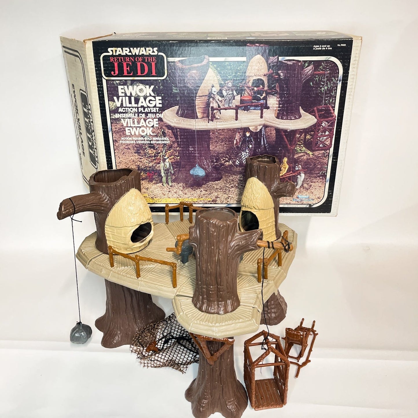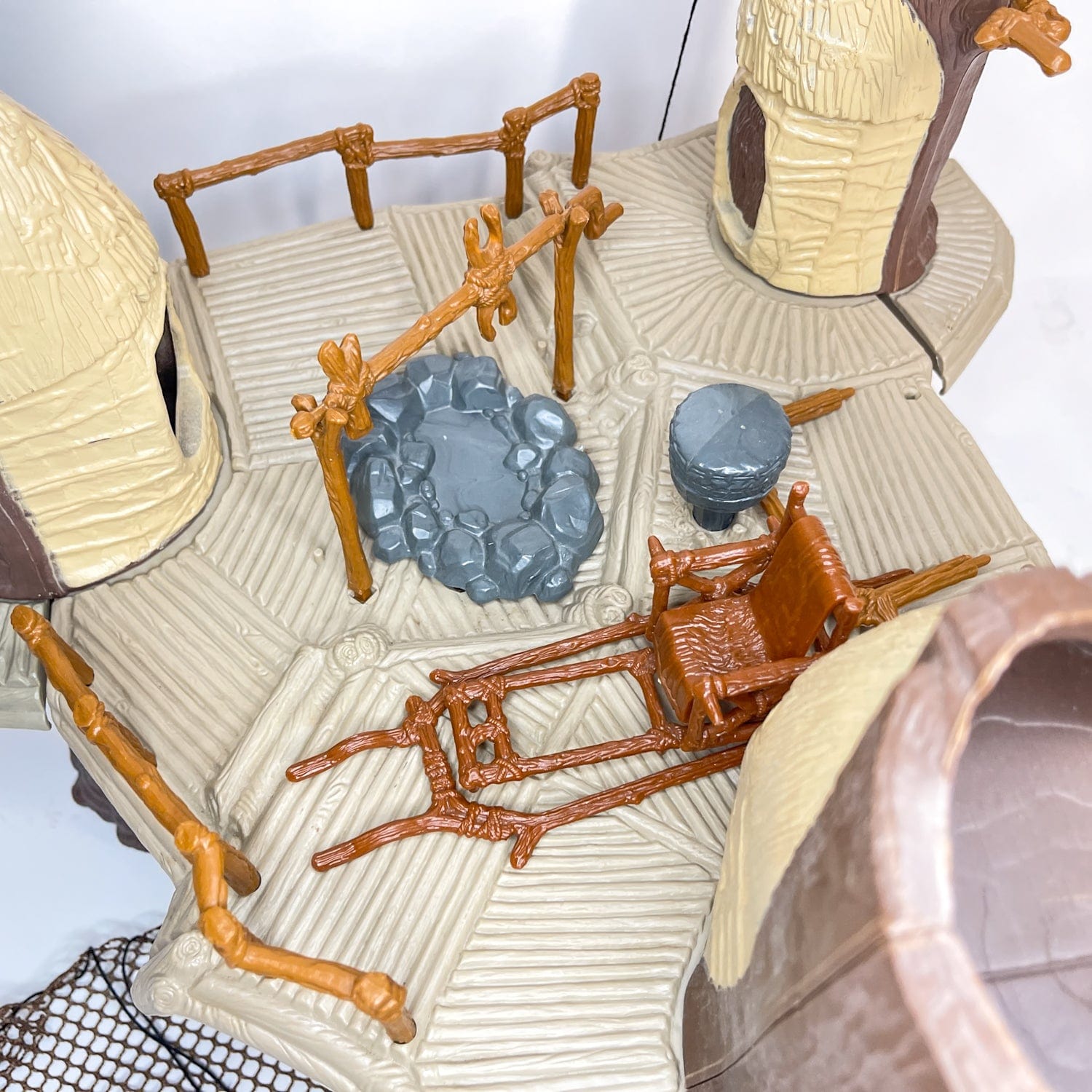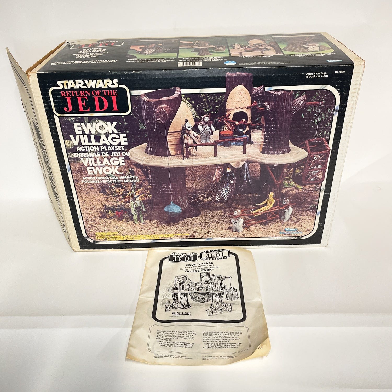 The Ewok Village toy from Kenner has one of the best play values in the vintage Star Wars toy line. It should be noted there are some differences with the Canadian version, besides the French on the box. The fire pit didn't come with a sticker in Canada, guess you gotta make your own fire. The drum is unpainted. Also the string was thicker and the plastic is a slightly different shade.
