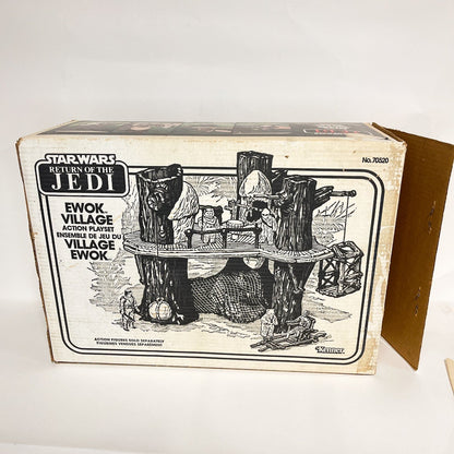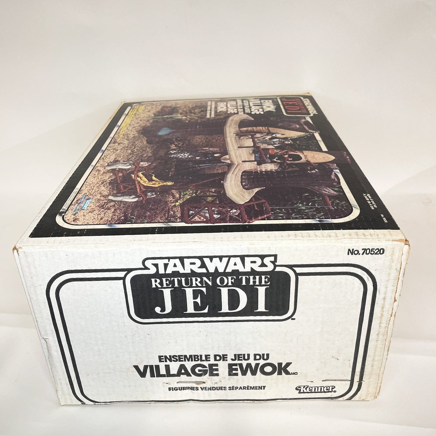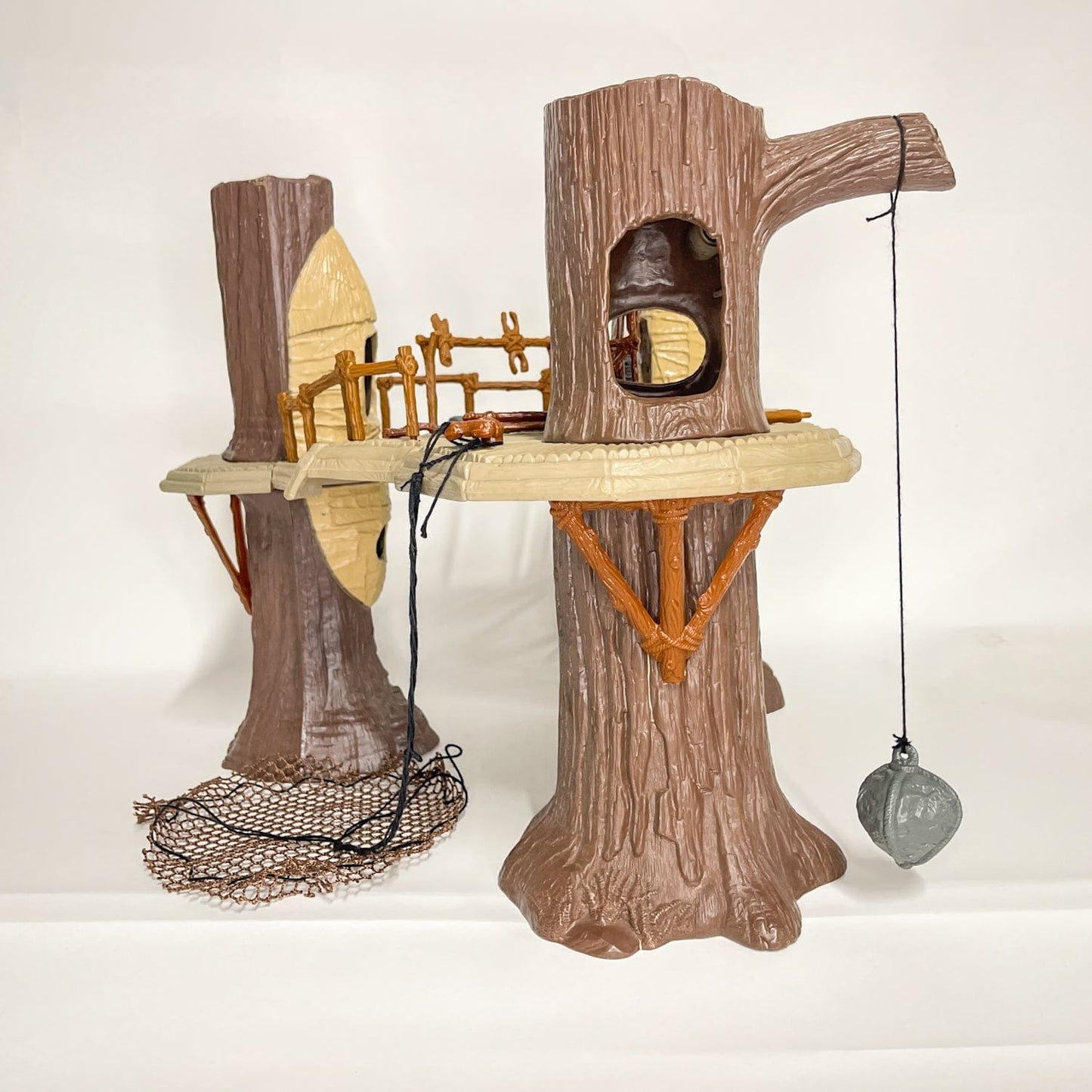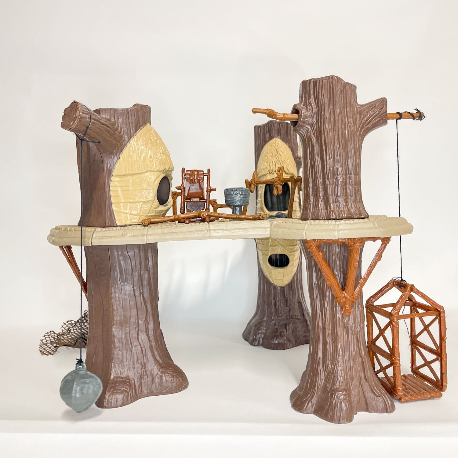 The Ewok Village toy from Kenner has one of the best play values in the vintage Star Wars toy line. It should be noted there are some differences with the Canadian version, besides the French on the box. The fire pit didn't come with a sticker in Canada, guess you gotta make your own fire. The drum is unpainted. Also the string was thicker and the plastic is a slightly different shade.