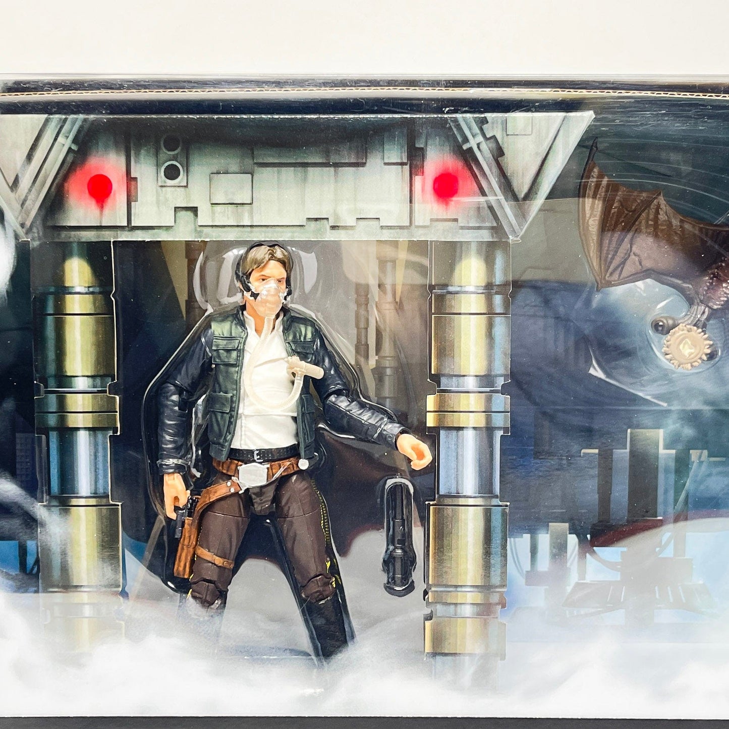 Exclusive at SDCC 2018, includes Han Solo with Spaceworm breathing gear, a Mynock figure, and a slipcase reveal packaging reveal that reproduces the space underneath the Millennium Falcon as an inset backdrop.