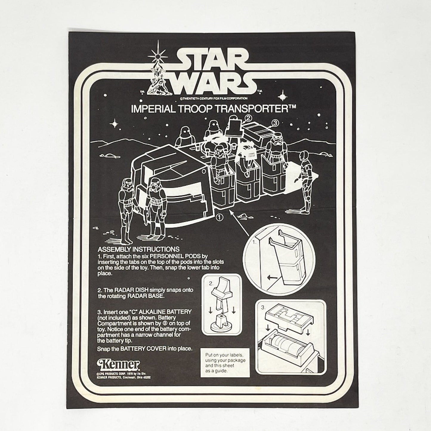 Vintage Kenner Imperial Troop Transporter instructions. Mint condition.