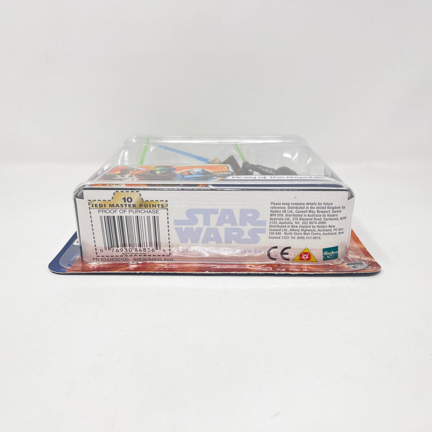 Includes three static-posed 3.75" scale Jedi Knights, perfect for dioramas or Clone Wars era-displays.