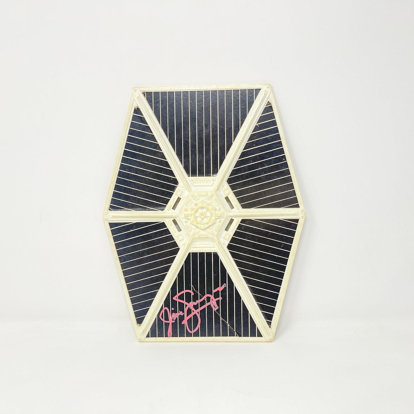 TIE Fighter wing are ready to be added to one of your current TIE's or would look great in a frame. Each TIE Fighter wing has been autographed by Jim Swearingen on the outside of the wing.
