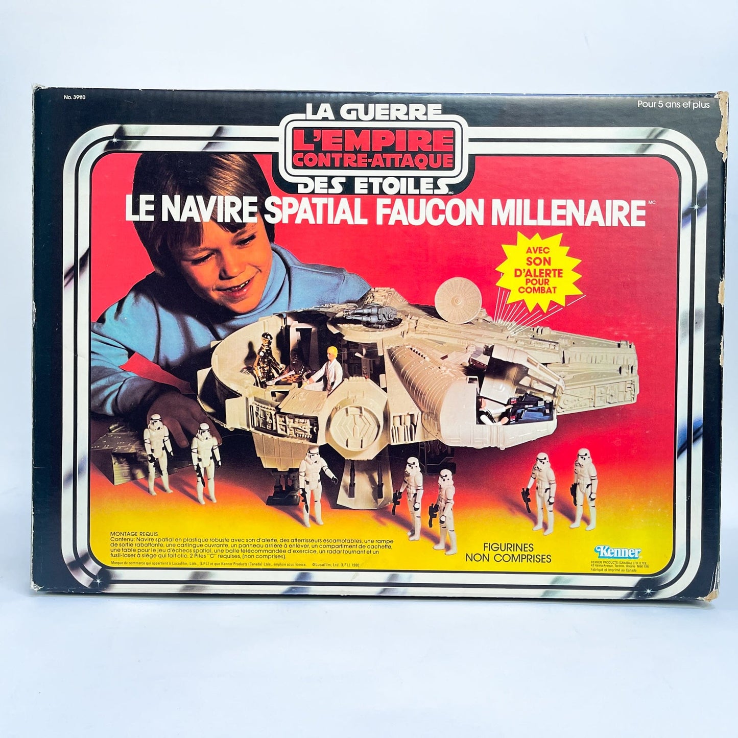 This Falcon is in great condition. It is complete including the elusive training ball and arm. Comes in Canadian Empire Strikes Back box. The Canadian boxes are knows as "suitcase" boxes, the closure on the ends fold into themselves (different from Kenner USA). The Canadian boxes also have full color graphics on all sides, including one French and One English side.