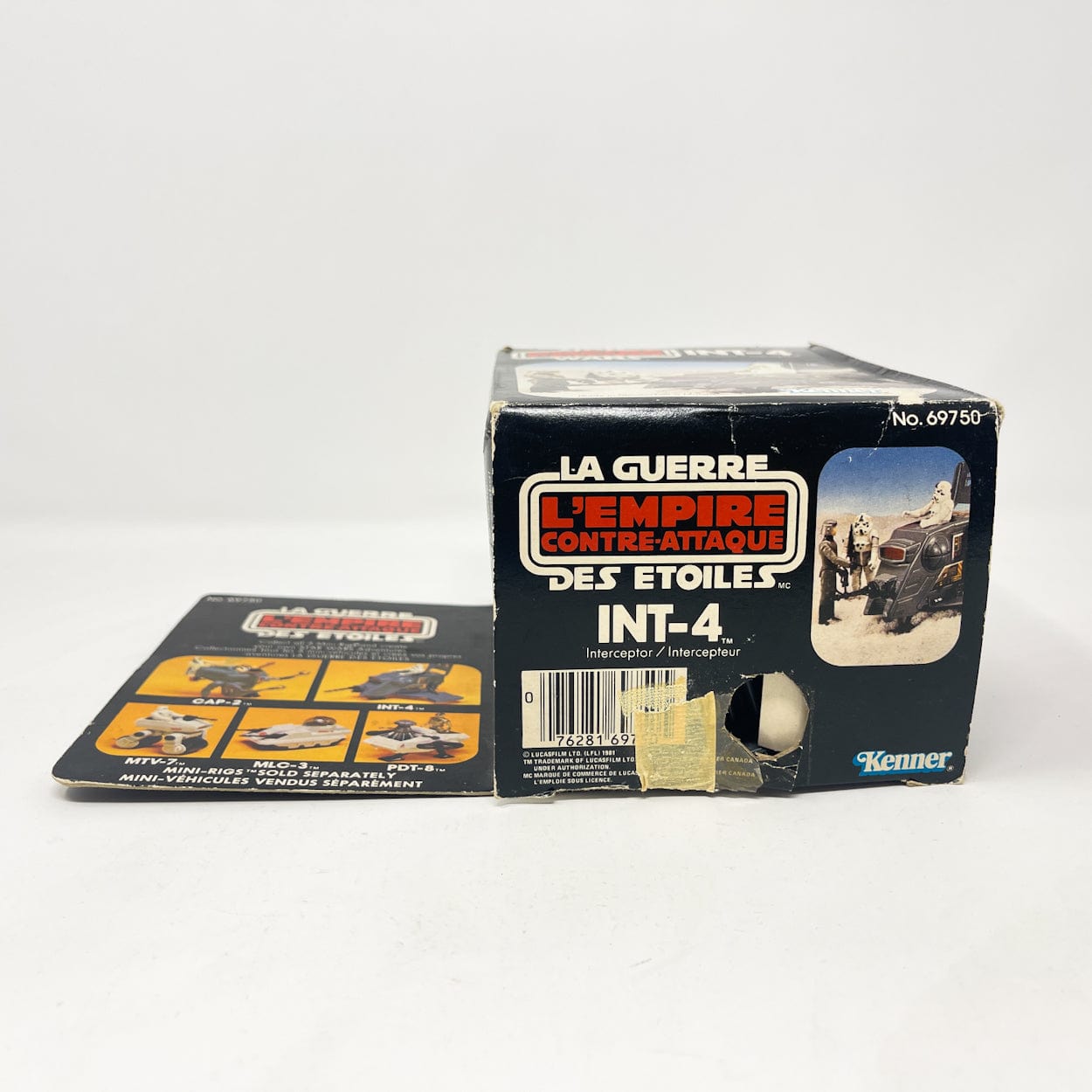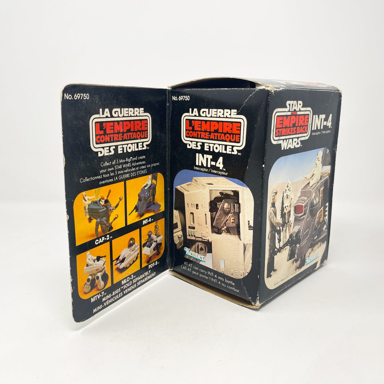 INT-4 Mini-Rig in an Empire Strikes Back box (it was also released in ROTJ boxes). Box has the Special Offer sticker for mail-in rebate. Mini-Rig is complete. POP has been cut from the bottom of the box.