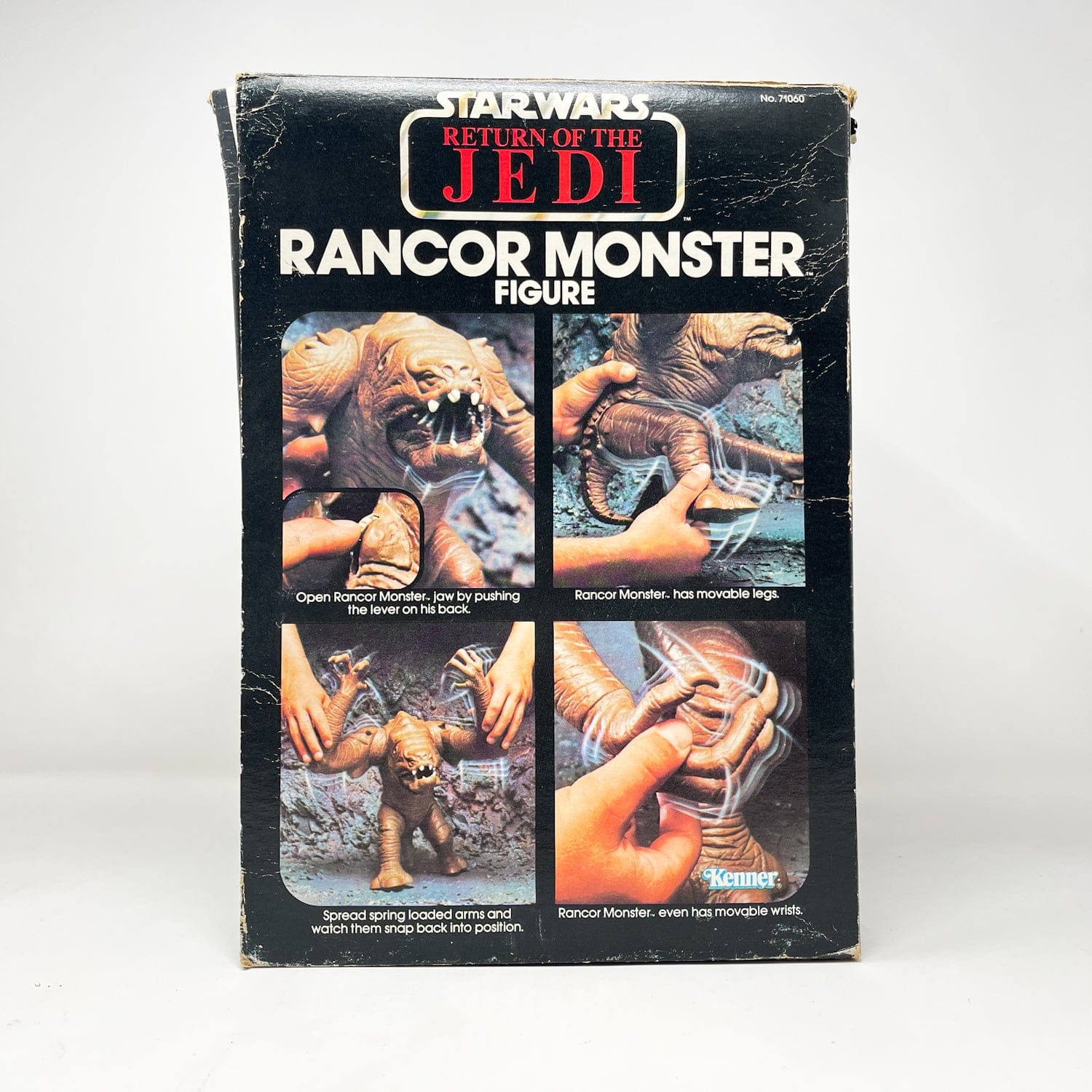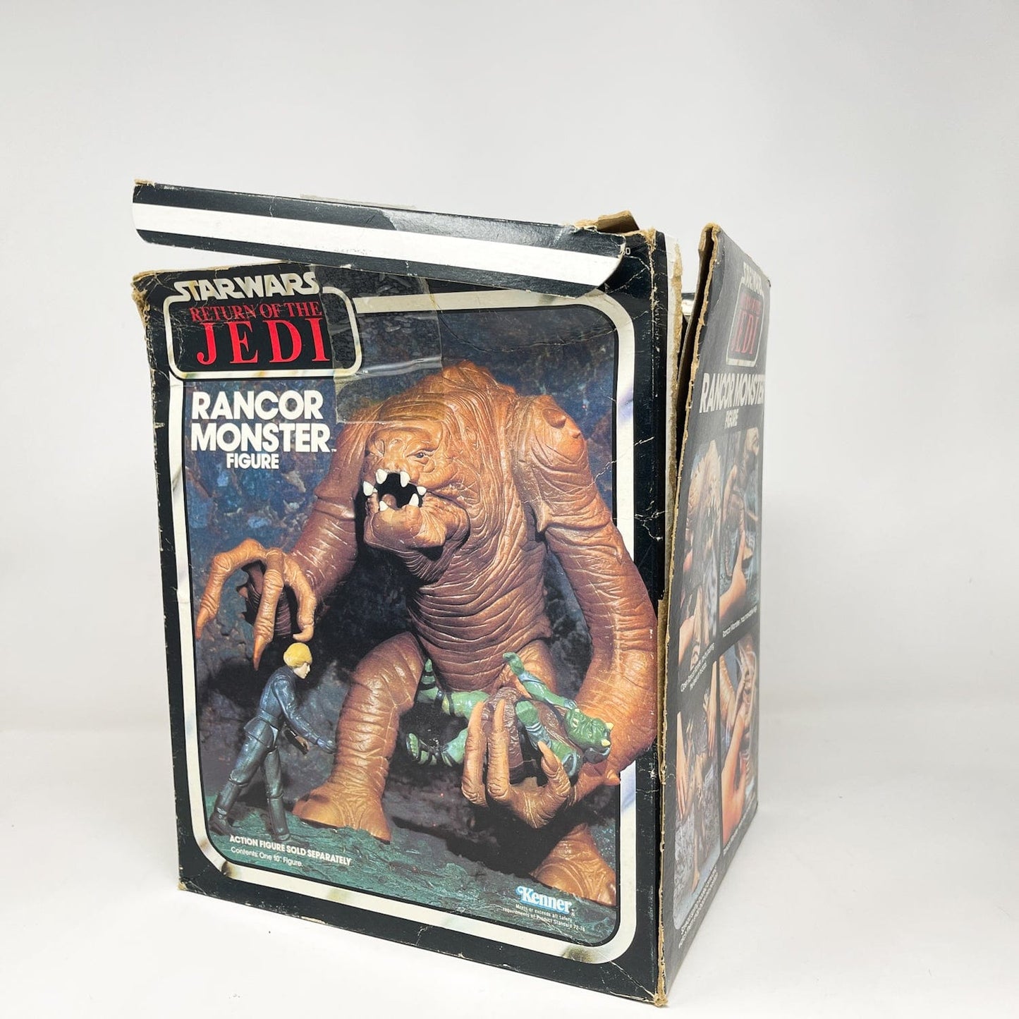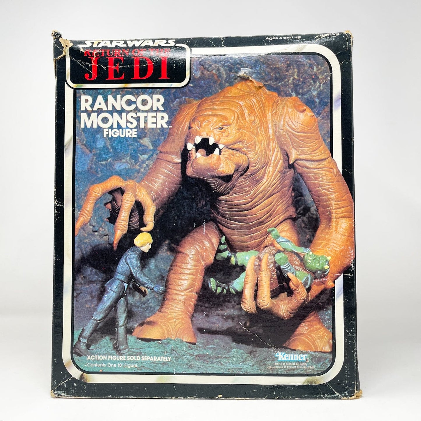 Jabba's trash compactor, the Rancor monster. This is one of the toys where Kenner's sculptors really nailed it. Return of the Jedi box, released in 1983.