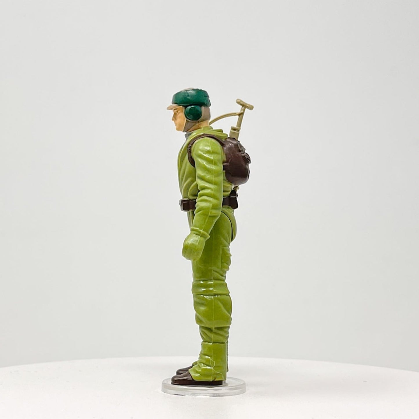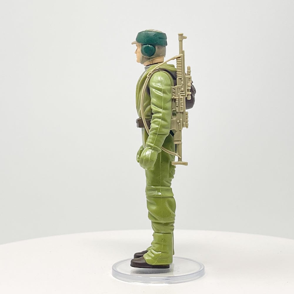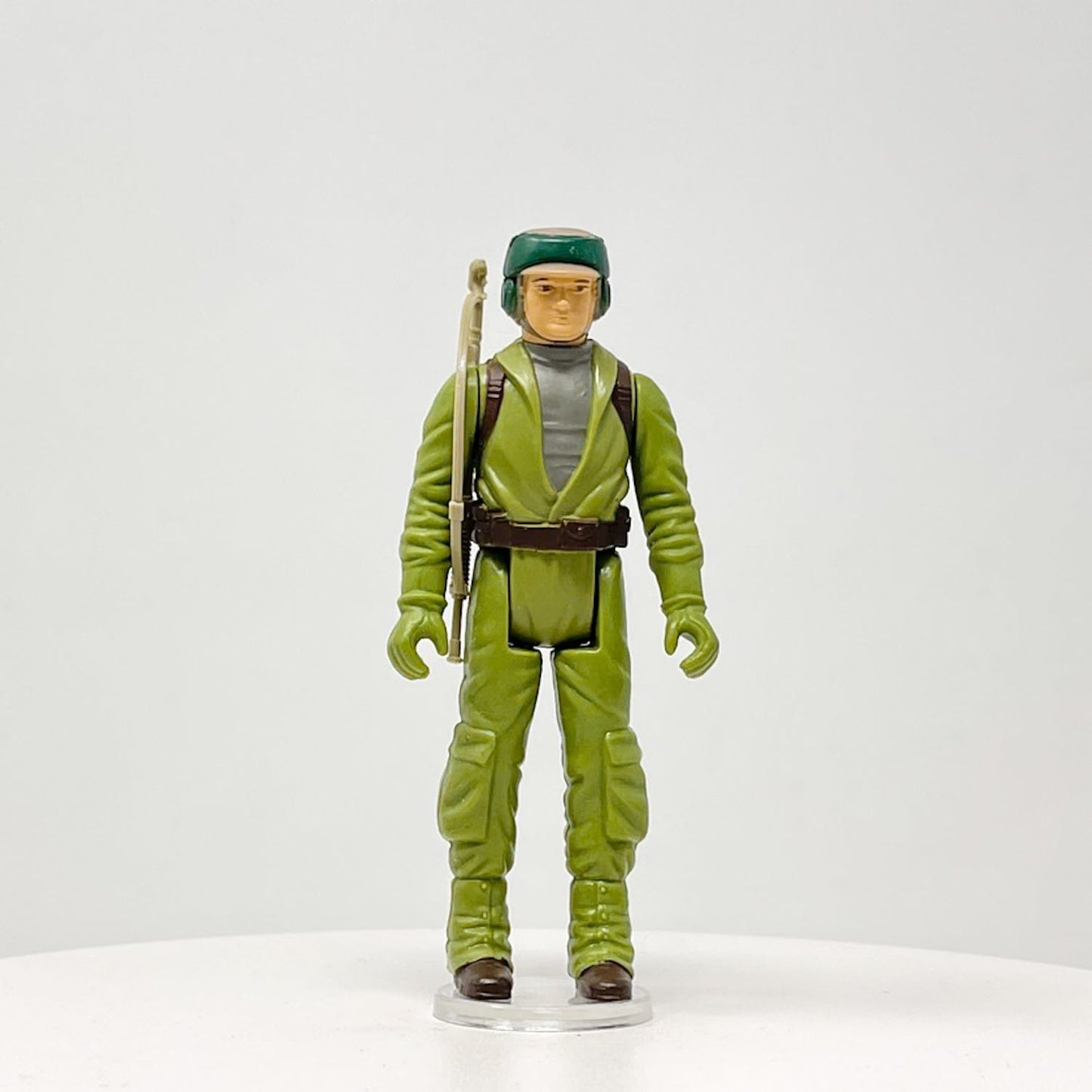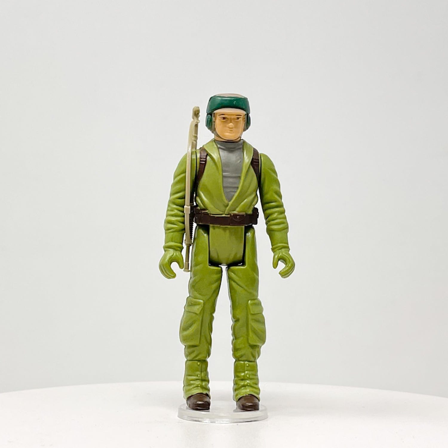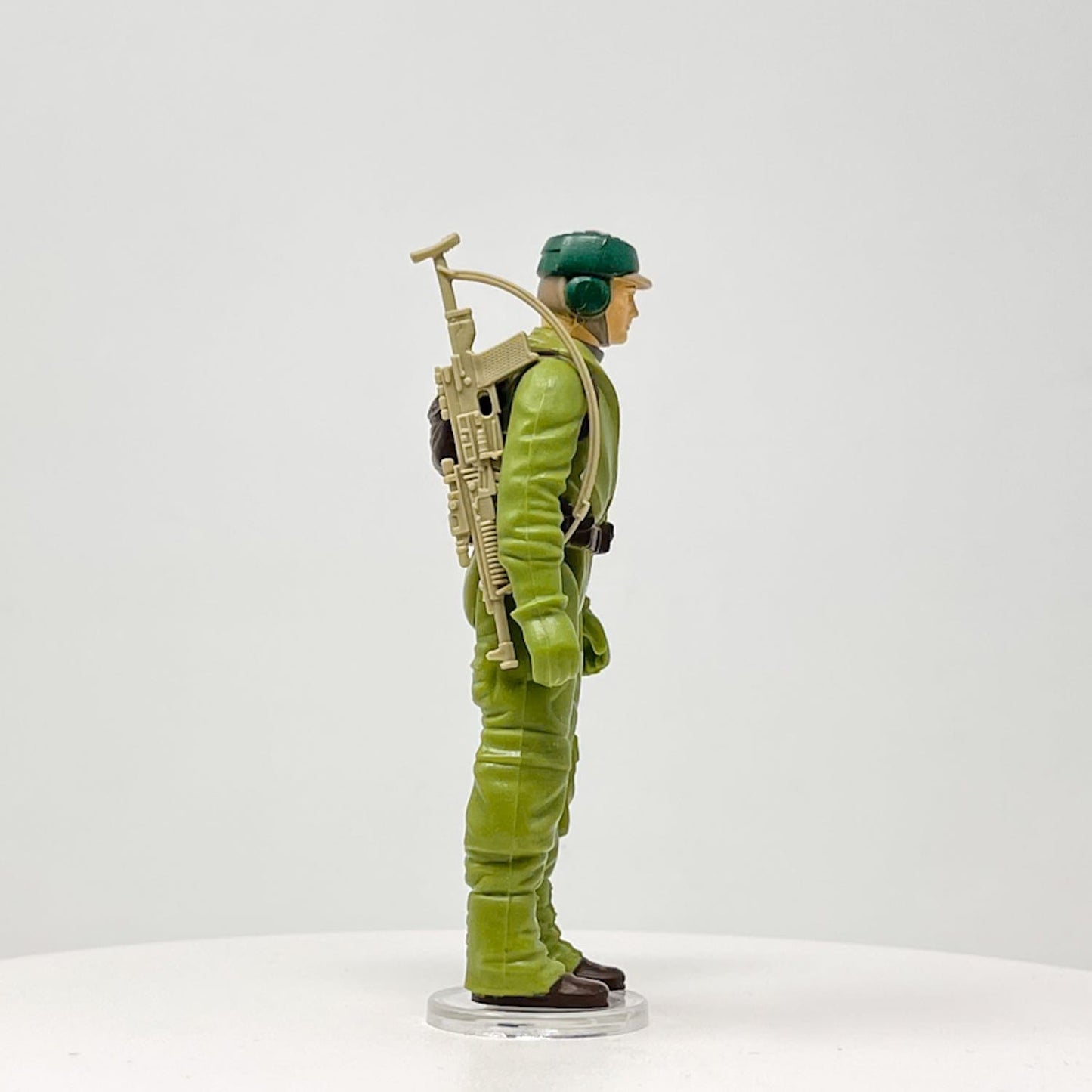 Rebel Commando from The Return of the Jedi complete with correct rifle. There are two major variants for the Rebel Commander; molded face and painted face. The molded face is molded in a skin color plastic, while the painted face uses paint for the skin color. Molded face are a little bit rarer than the painted face.
