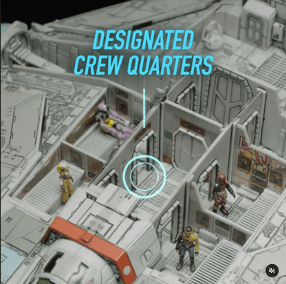 Recreate the liberation of Lothal with the STAR WARS Micro Galaxy Squadron Ghost. This 15-inch vehicle is packed with kid-friendly action features: Ignite thursters with optional motion and button activated lights and sounds for rotating laser turrets, engines, hyperdrive, airlocks, cockpit, and landing gear. The crew quarters has space for numerous micro figure accessories as well as a hidden engine room. Front loading ramp with space for speeder storage and two starfighter class attachment clips on either side.