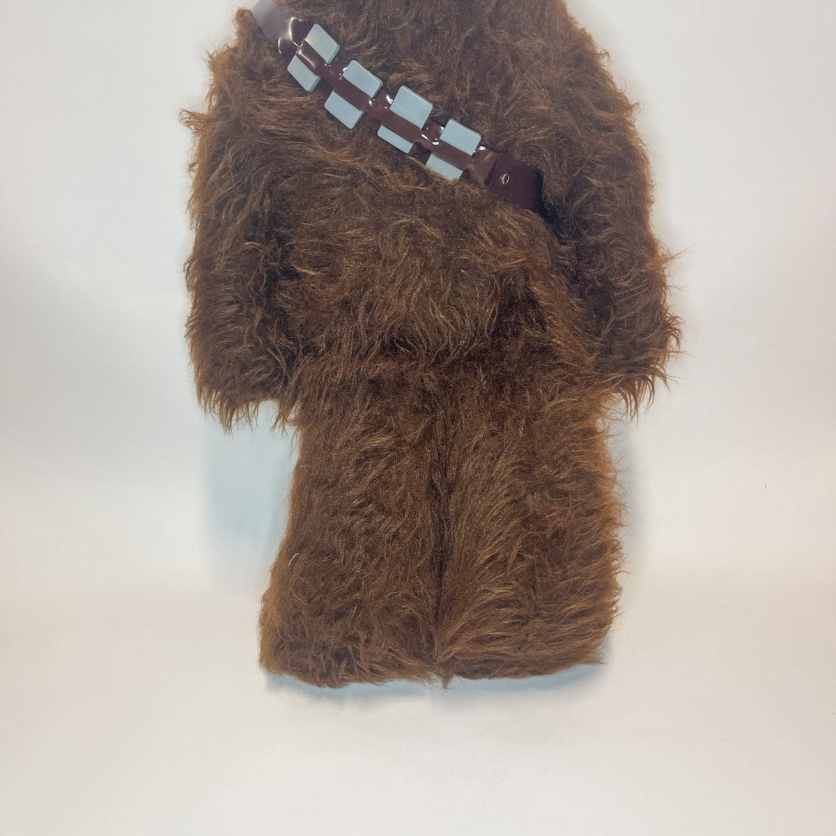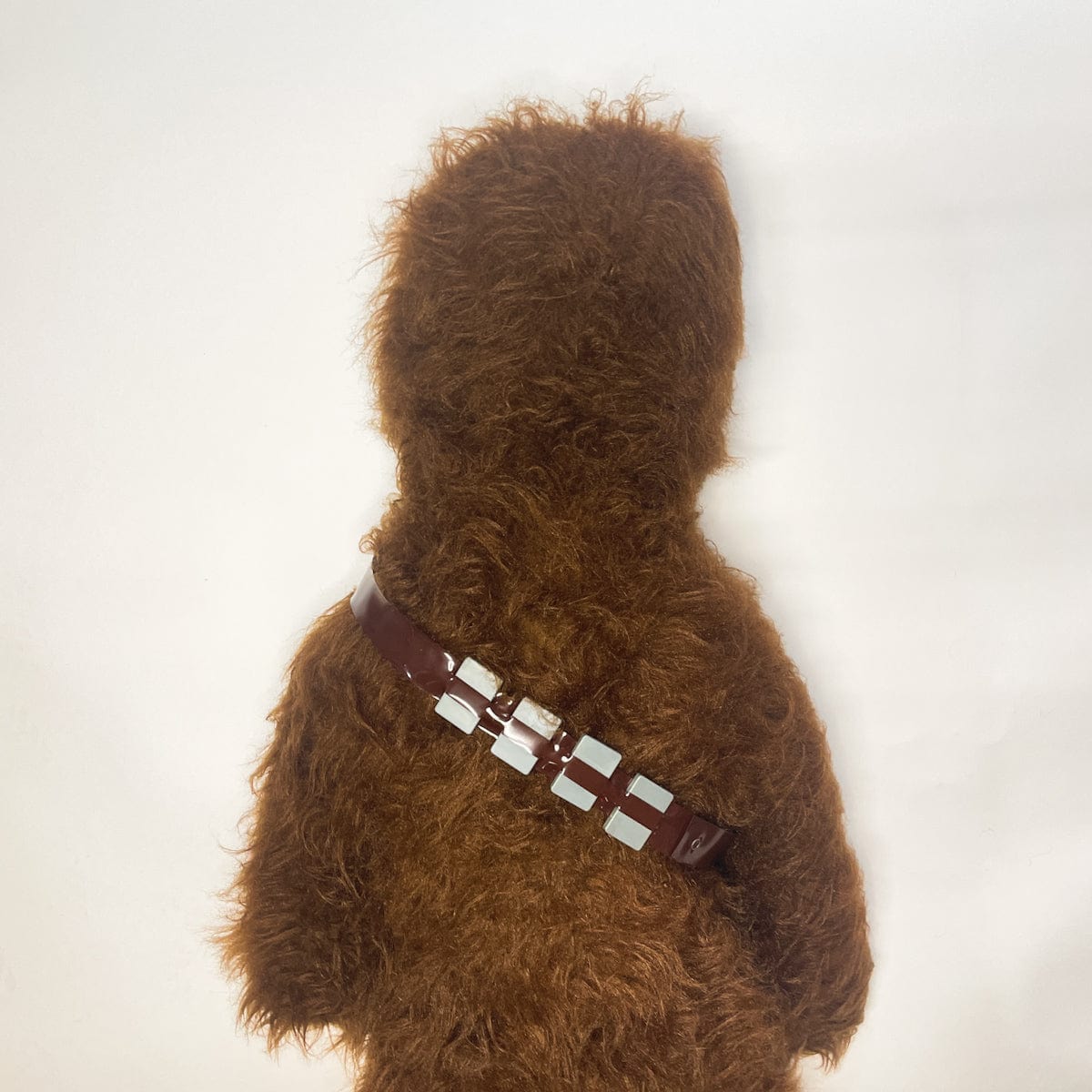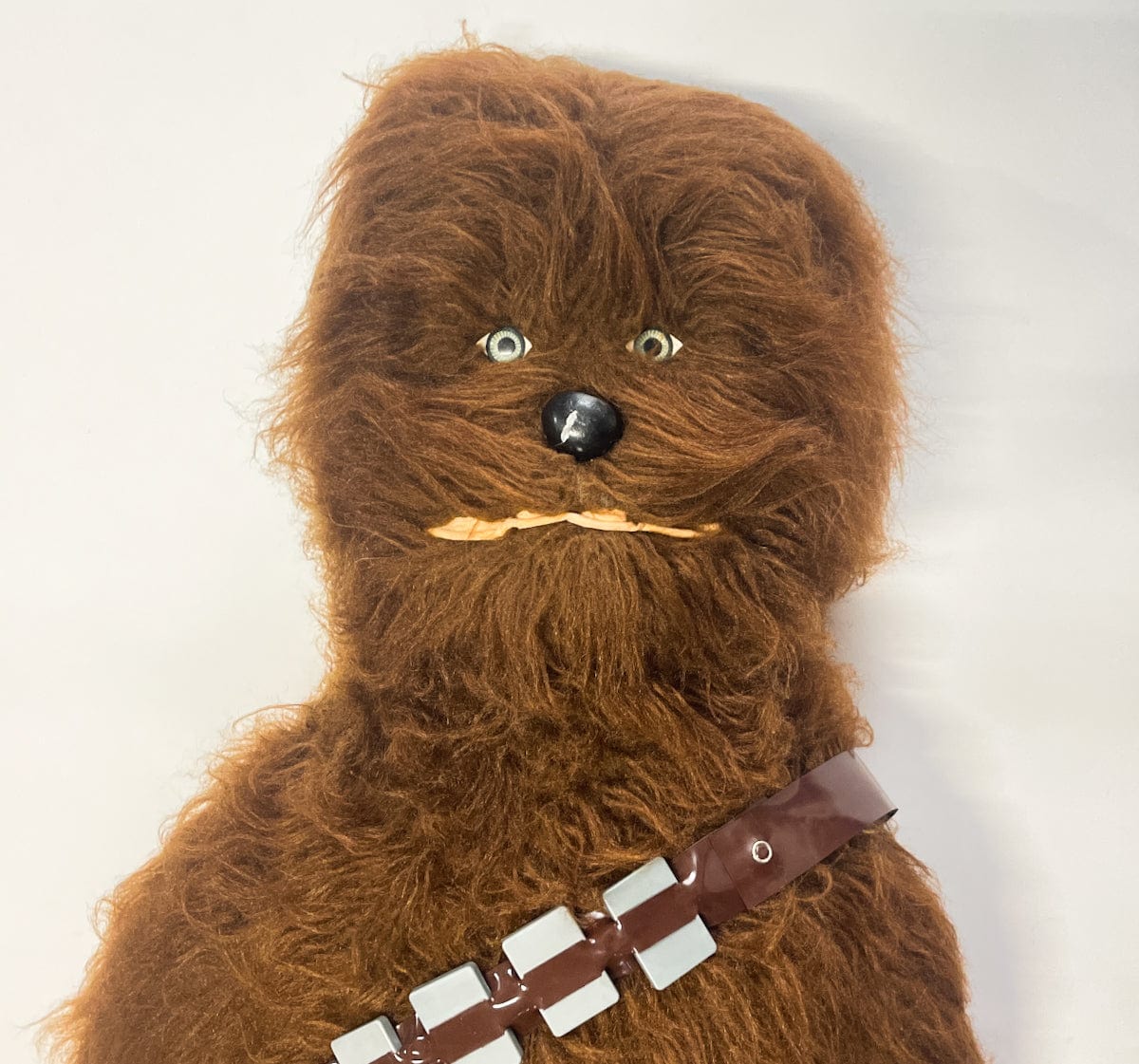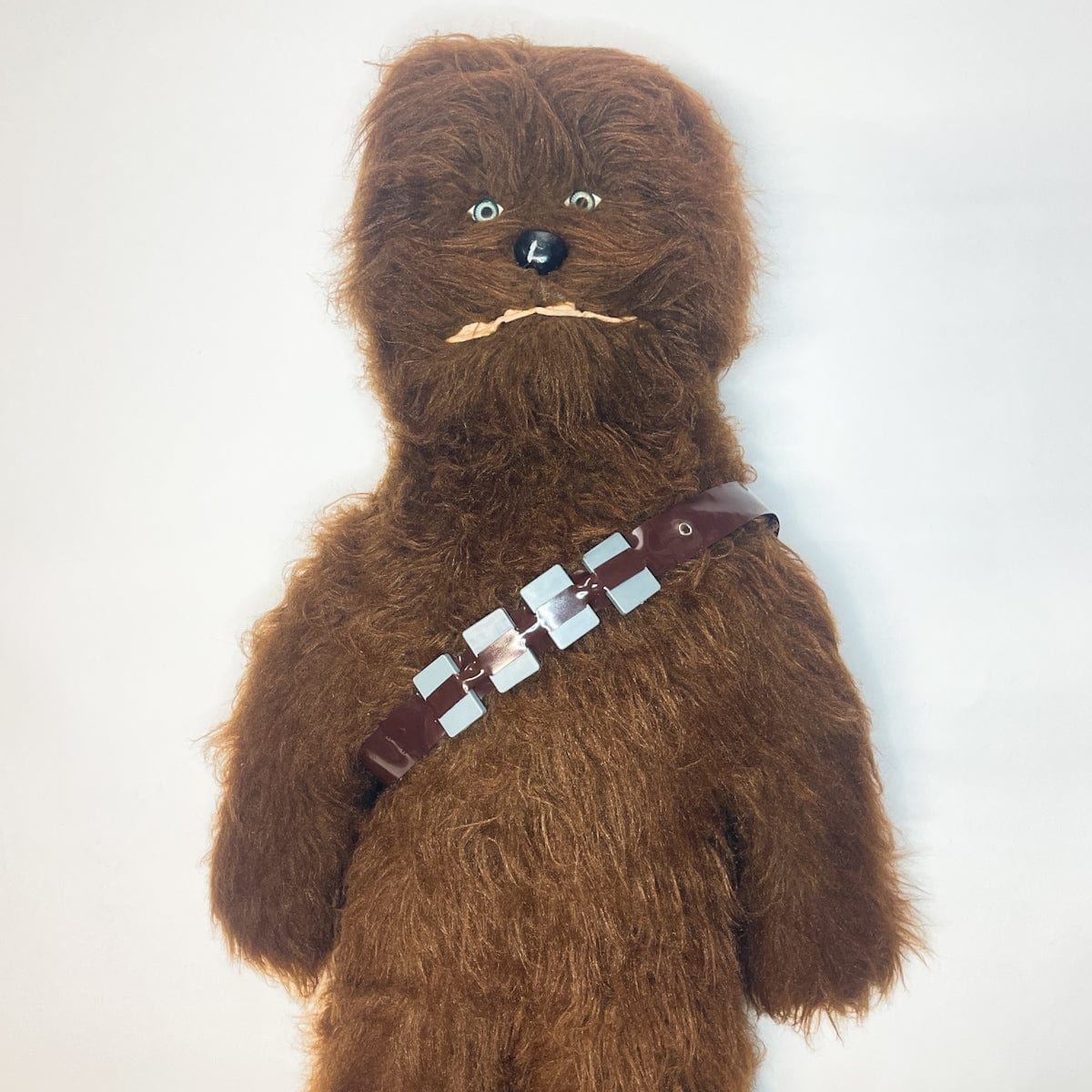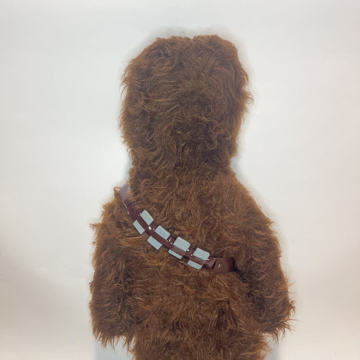 The 4 ft Chewie is thought to be a store display because there are so few of them around, though there's not a lot of information about it. Made of the same wookie fur as the regular sized vintage Chewbacca stuffed toy. He sports two of the bandoliers found on the regular Chewie. There is a metal rod "skeleton" inside to help it stand up. He has the same wacky grin as the smaller Regal Chewbacca too!