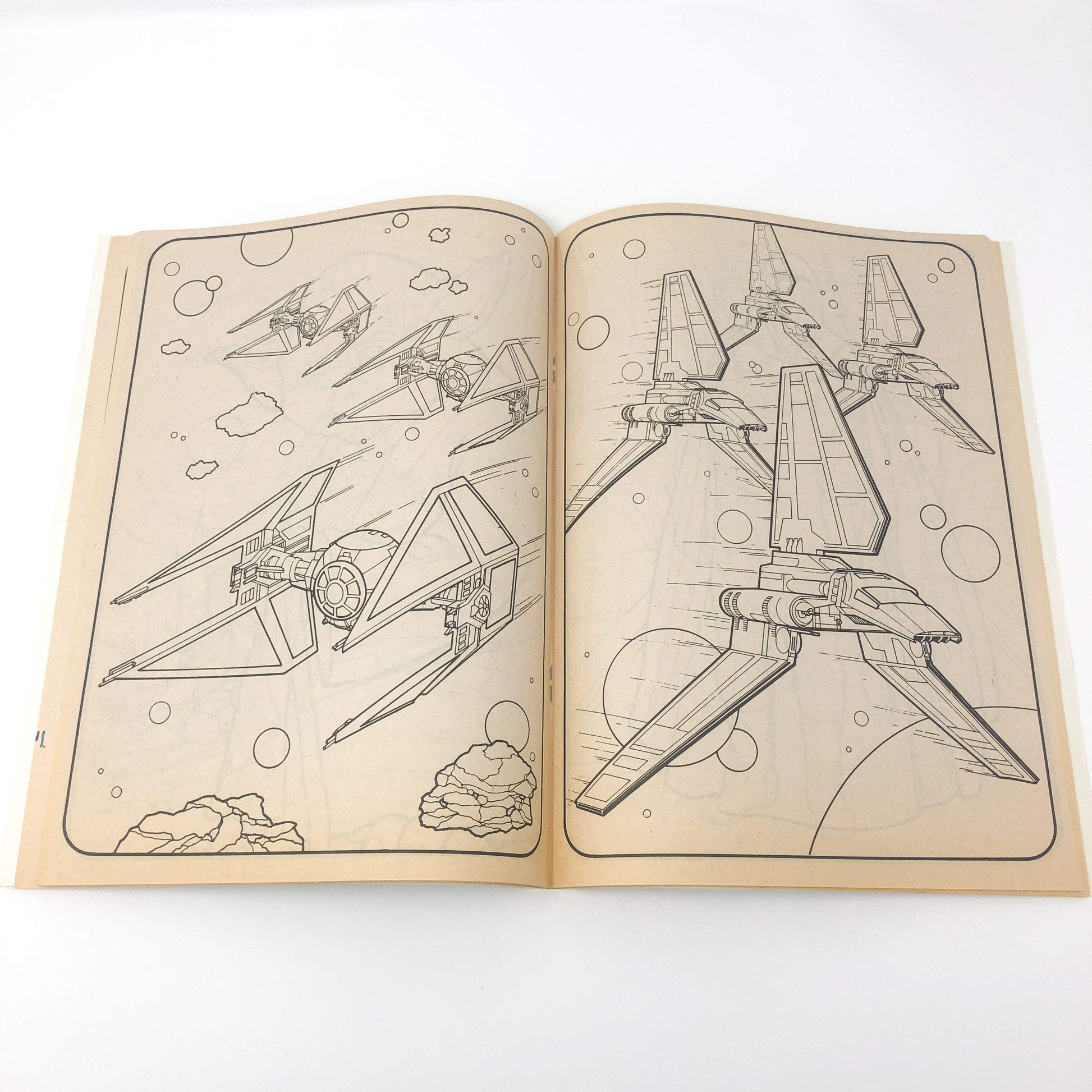 Return of the Jedi colouring book made by Kenner Canada. One side features the French ROTJ logo and the other English. Max Rebo, Droopy McCool, Salacious Crumb and Lando in Skiff are pictured on both sides.