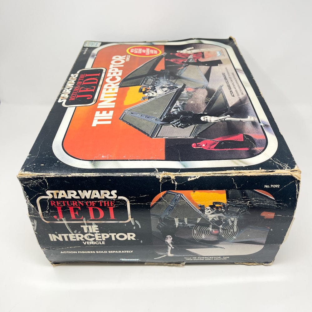 Made by Kenner for Return of the Jedi and released in 1984, the TIE Interceptor is definitely one of the coolest looking ships. Features the same wing release mechanism as other Kenner vintage TIE Fighters.