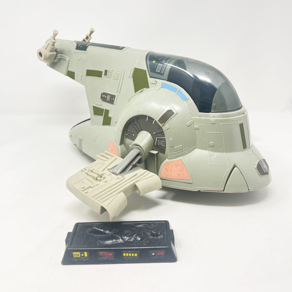 Boba Fett's iconic ship, the Slave 1. Made by Kenner in 1980 for the release of the Empire Strikes Back. Features Carbonite Han Solo, retracting ramp, rotating seat and wings plus a lot of long play fun time. One of Kenner's finest vintage Star Wars toys.