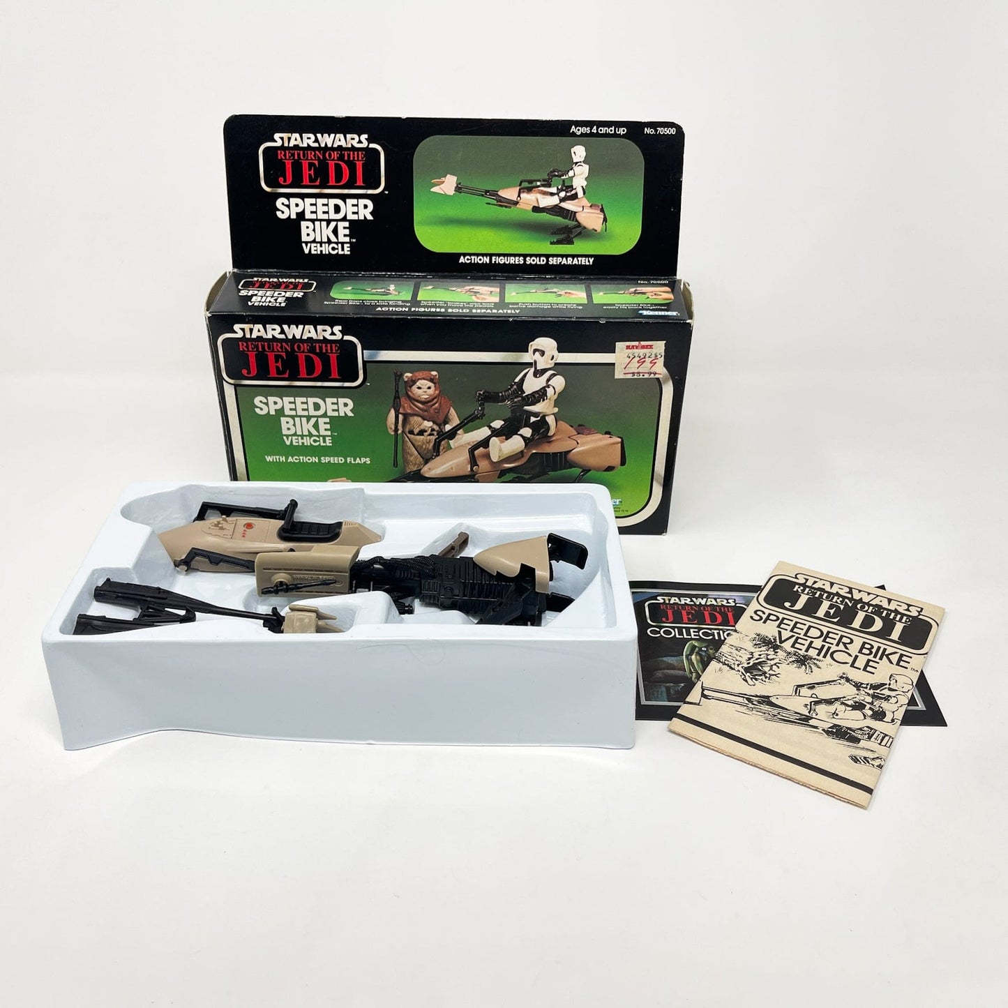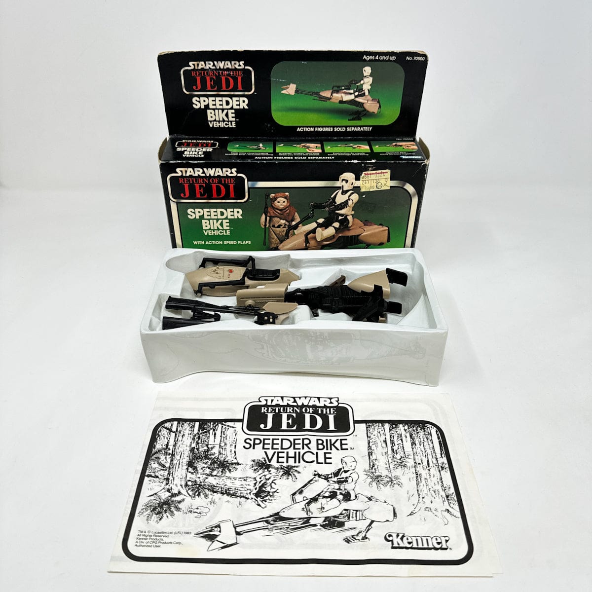 Comes with original tray with parts still in baggies. Also includes instructions. Speeder Bikes are complete including rear flaps and exploding mechanism works perfectly.