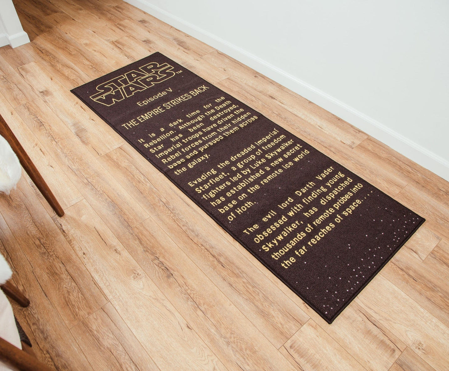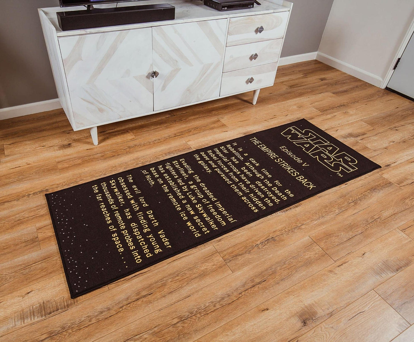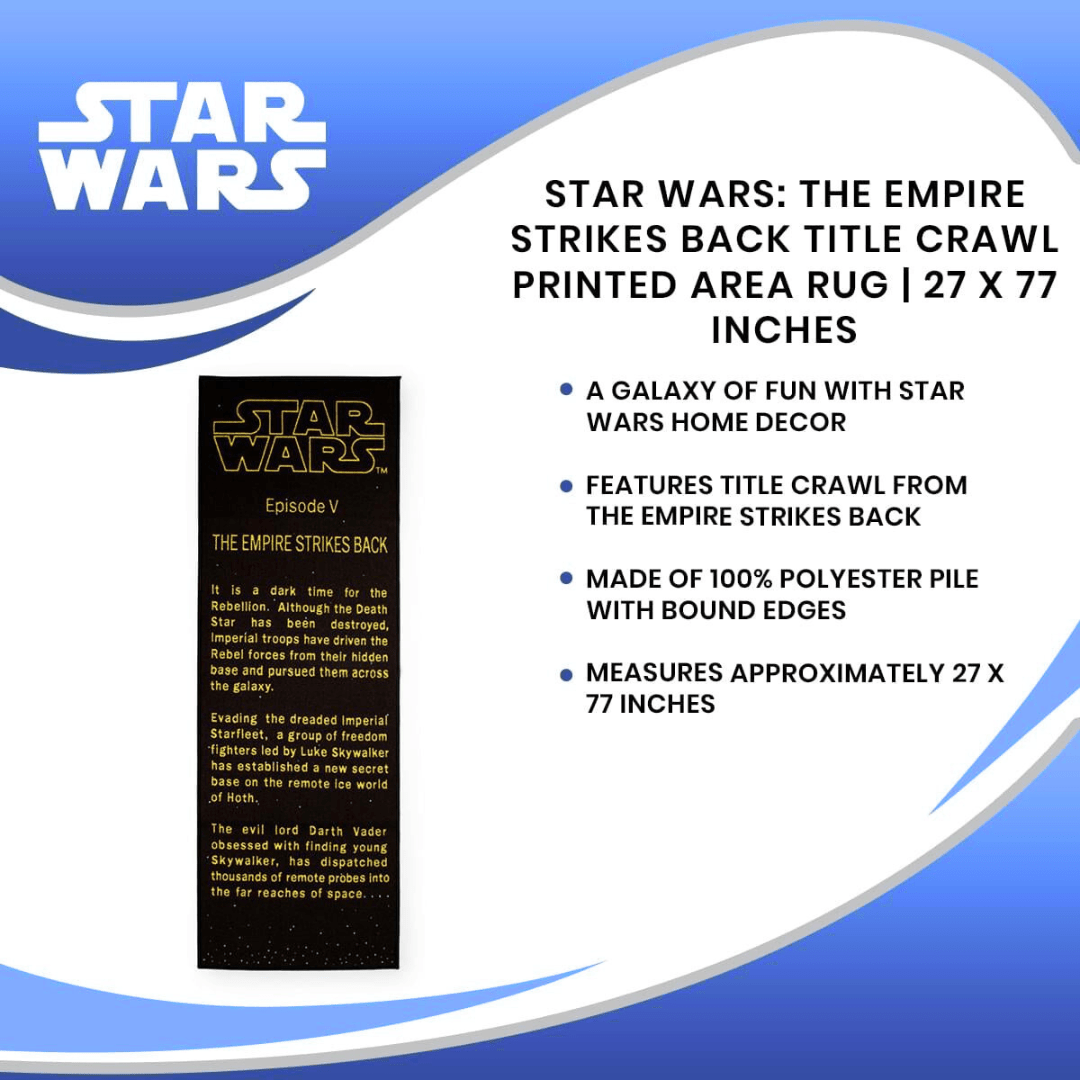 One EPIC addition: Transform your space with the decorative accent rug featuring the legendary title crawl from Star Wars: The Empire Strikes Back!