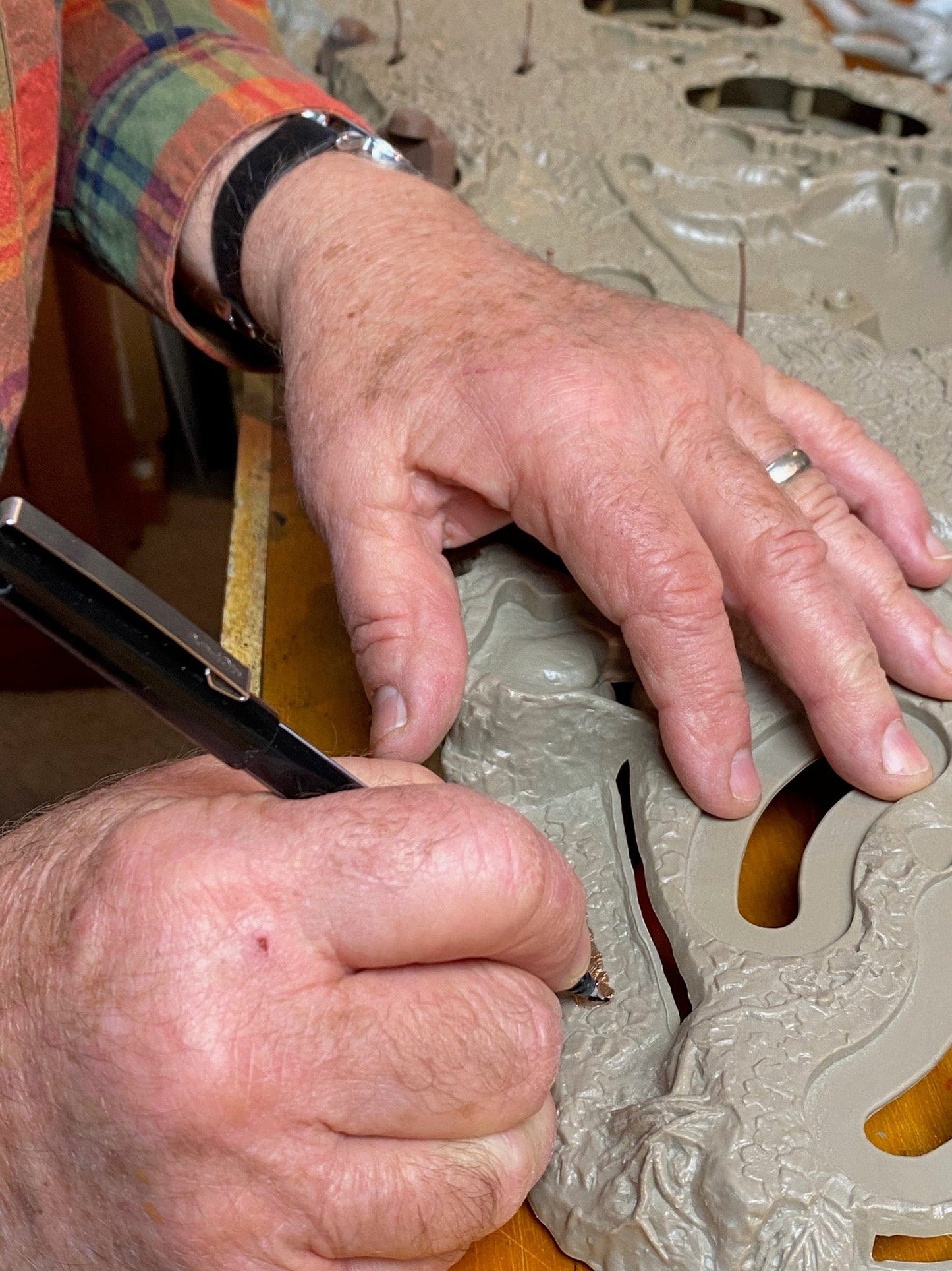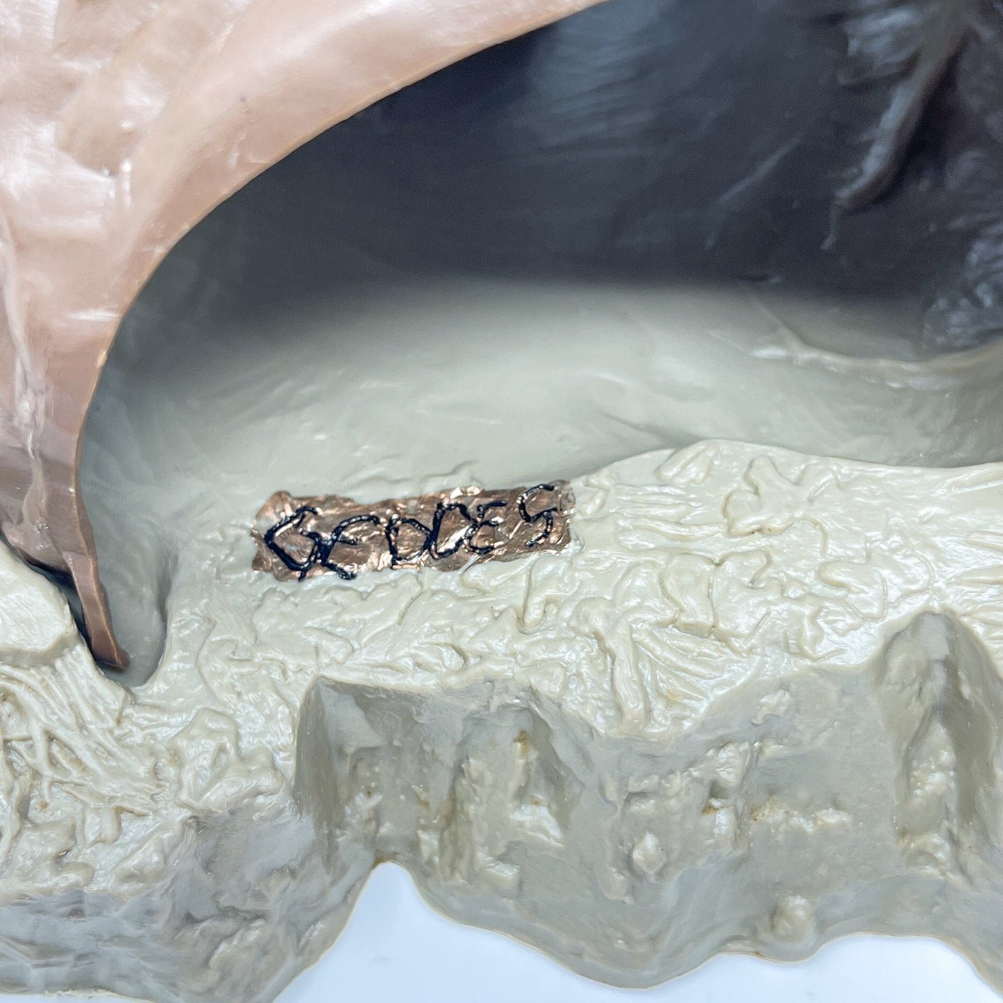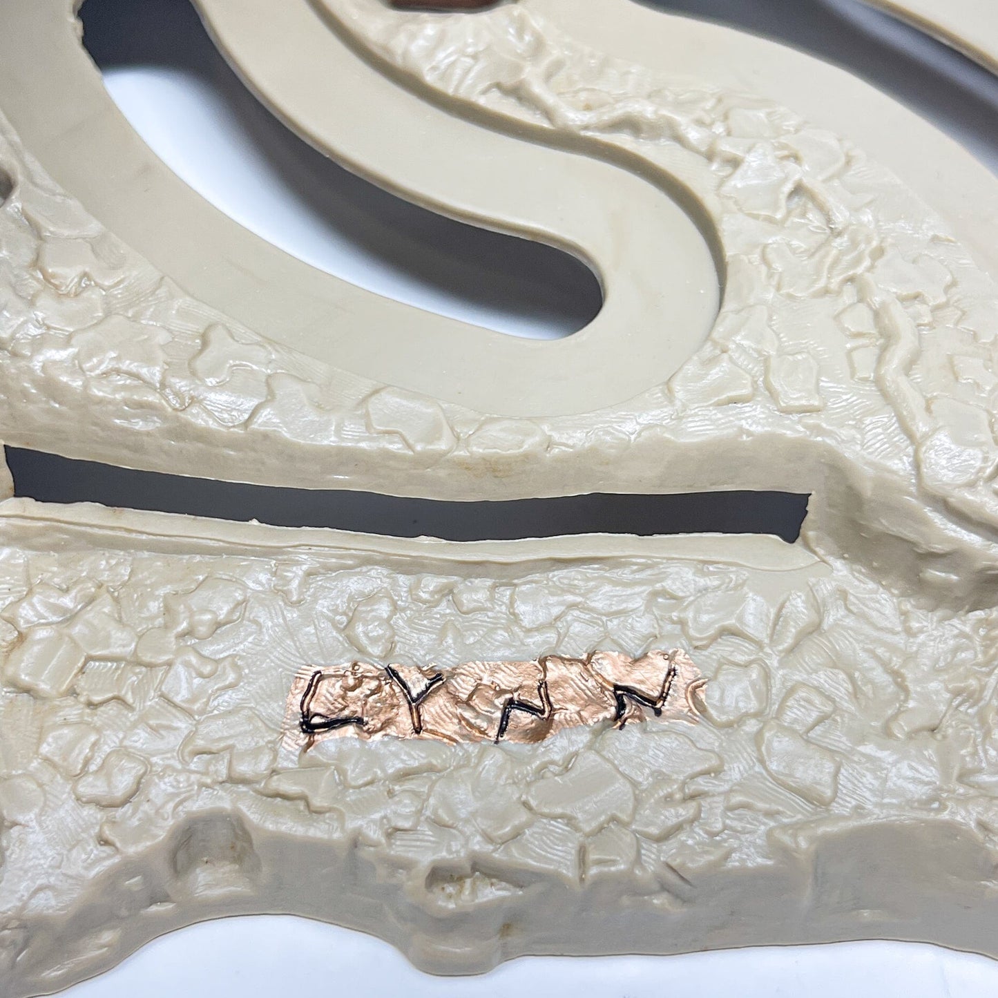 Stephen has autographed the top of the playsets, and personally outlined the hidden names. Geddes also sculpted in a mini self-portrait in the base of the tree, saying "It didn’t survive the tooling process gracefully, but I highlighted it anyway".