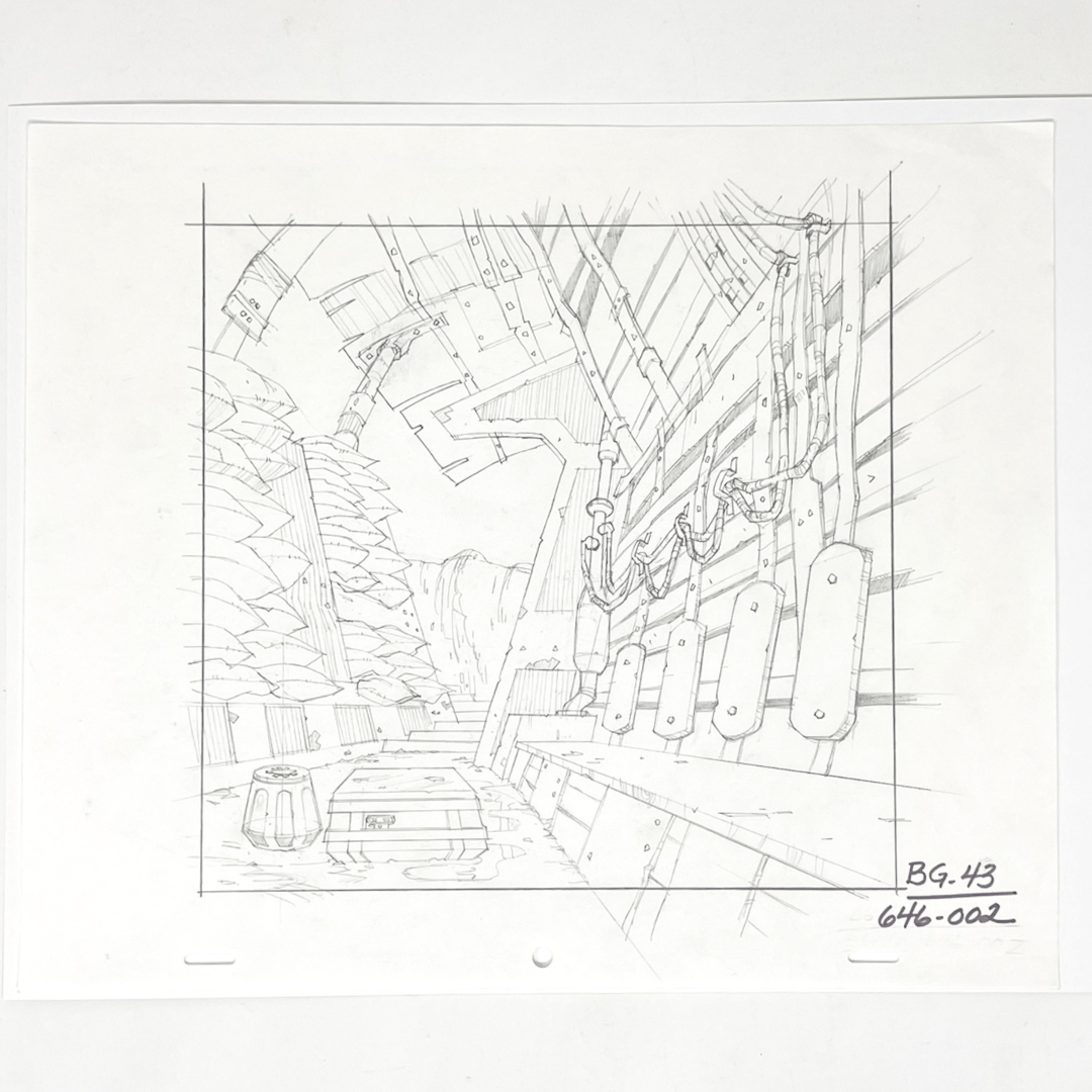 This is an original, hand drawn background concept board from the Genndy Tartakovsky 2D Clone Wars animated series. From the collection of Paul Rudish, Art Director on the series.
