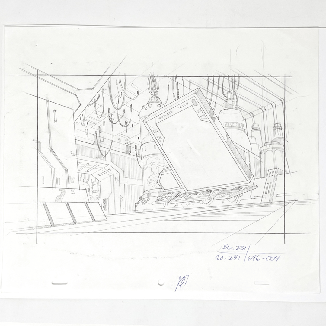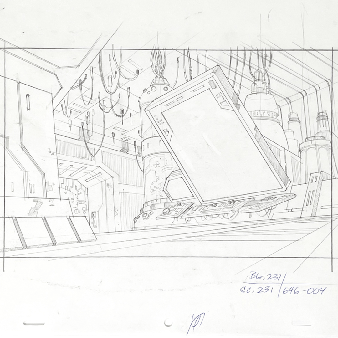 This is an original, hand drawn background concept board from the Genndy Tartakovsky 2D Clone Wars animated series. From the collection of Paul Rudish, Art Director on the series.