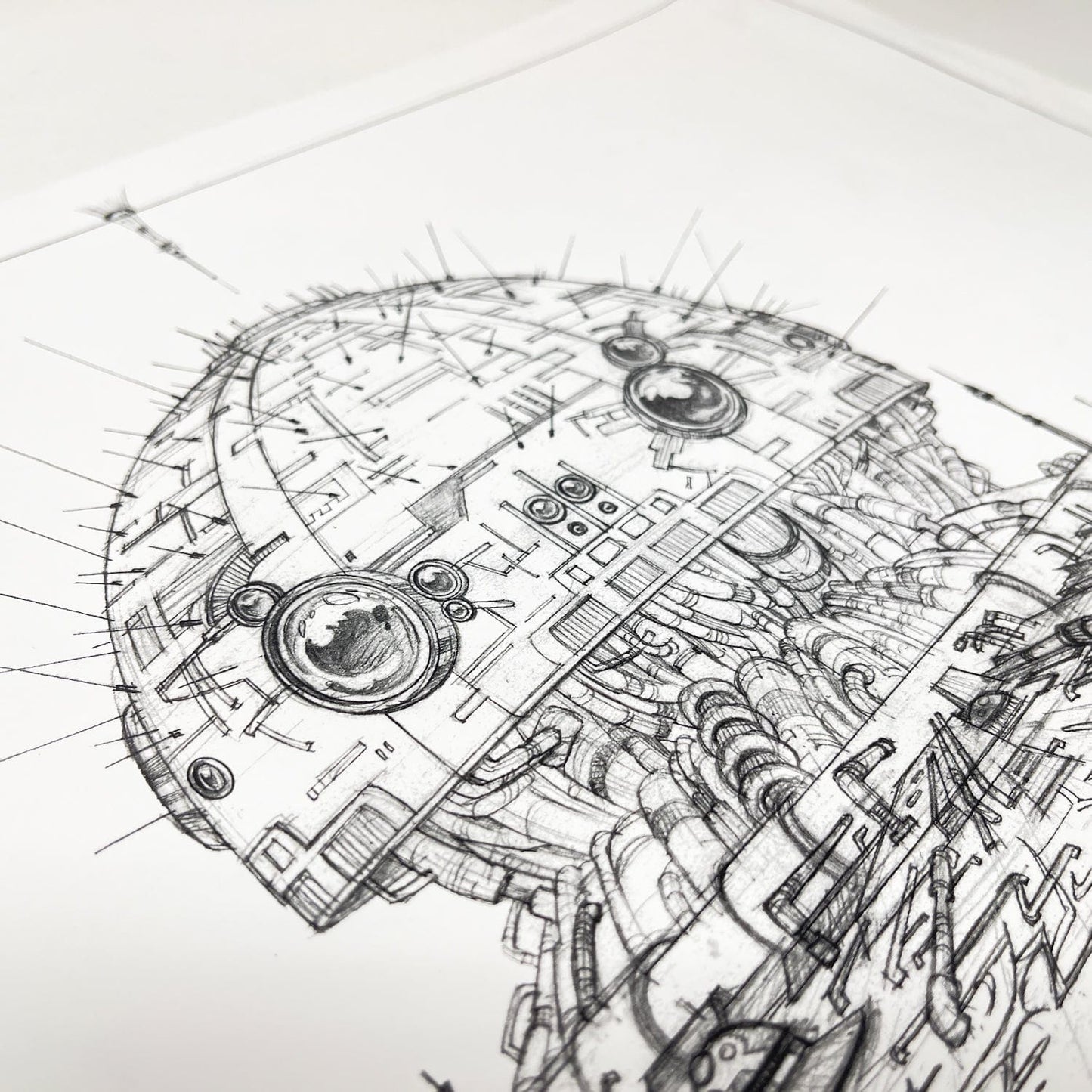This is an original production photocopy artwork from the Genndy Tartakovsky 2D Clone Wars animated series. From the collection of Paul Rudish, Art Director on the series.