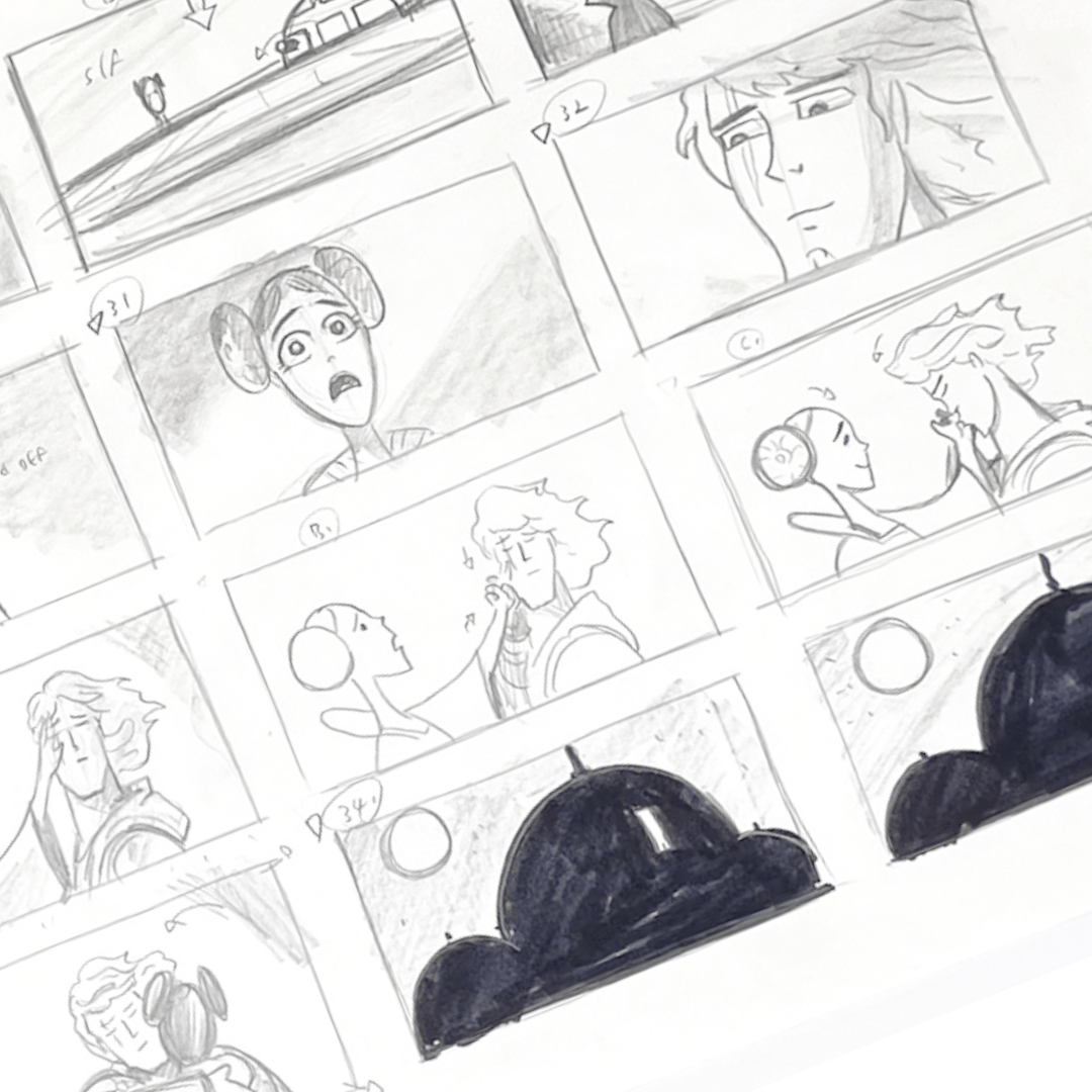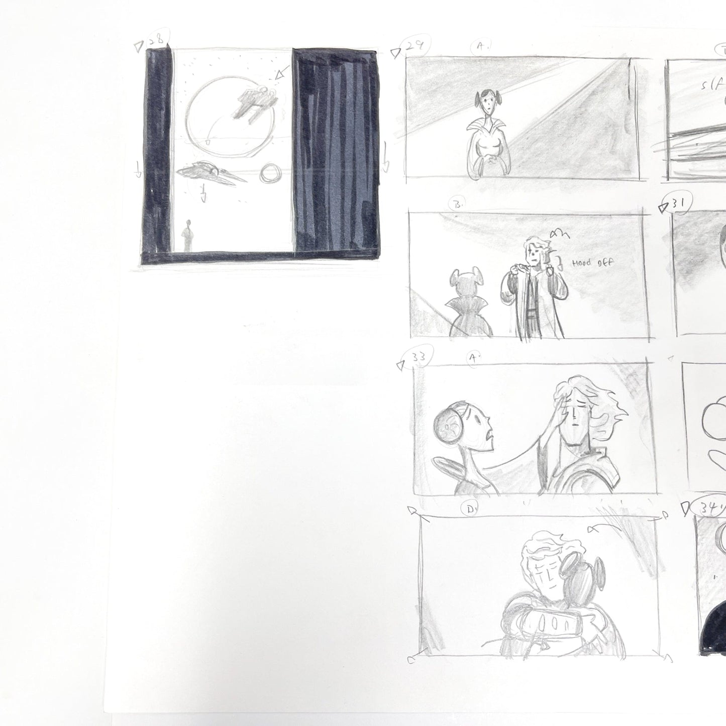 This is an original, hand drawn storyboard from the Genndy Tartakovsky 2D Clone Wars animated series. From the collection of Paul Rudish, Art Director on the series.