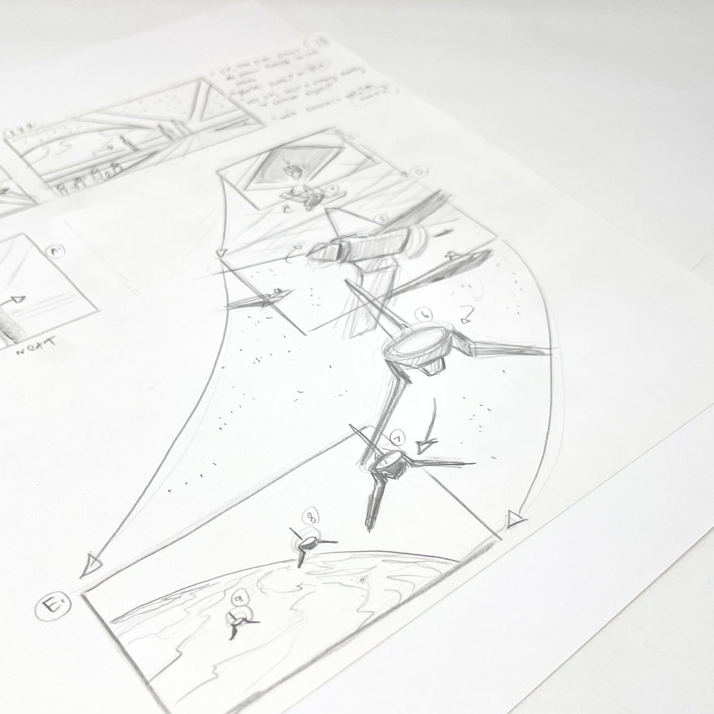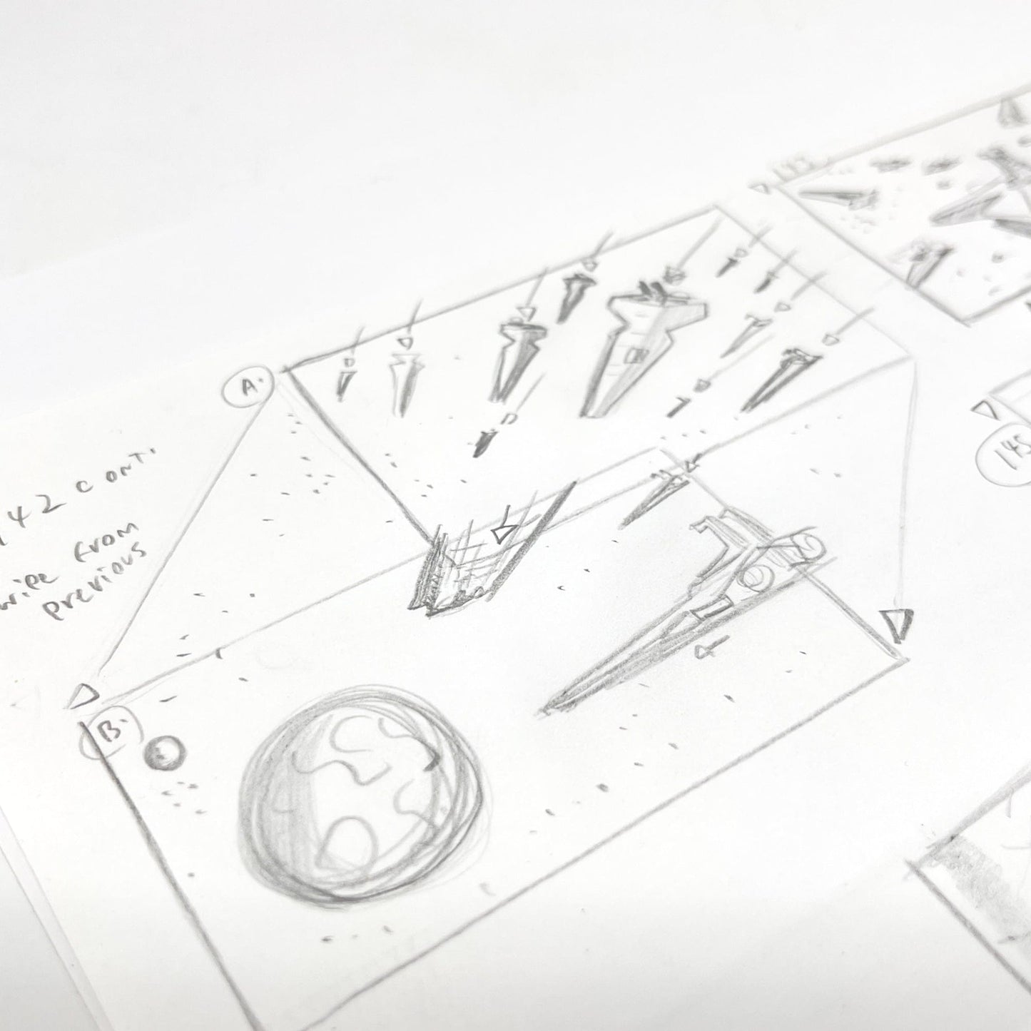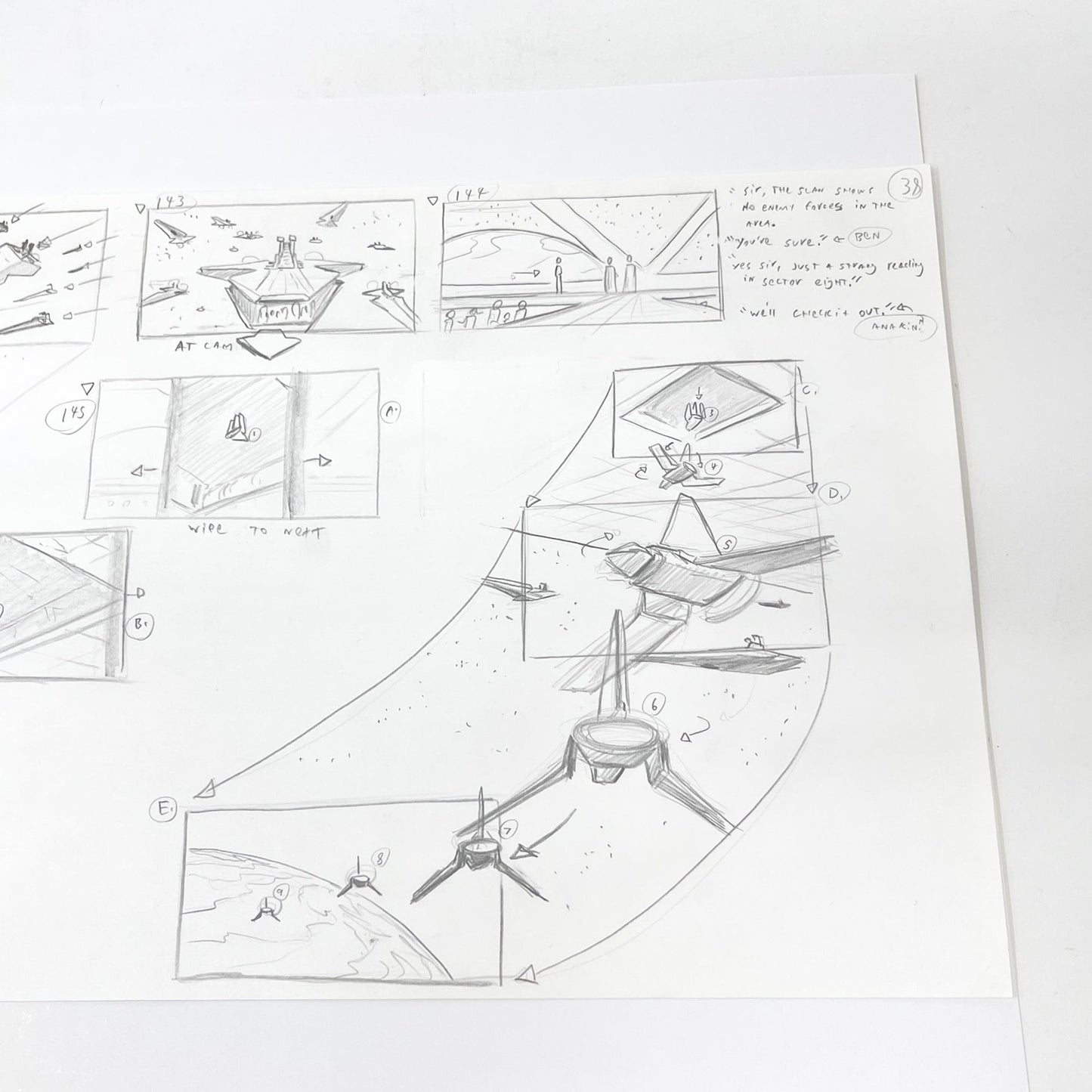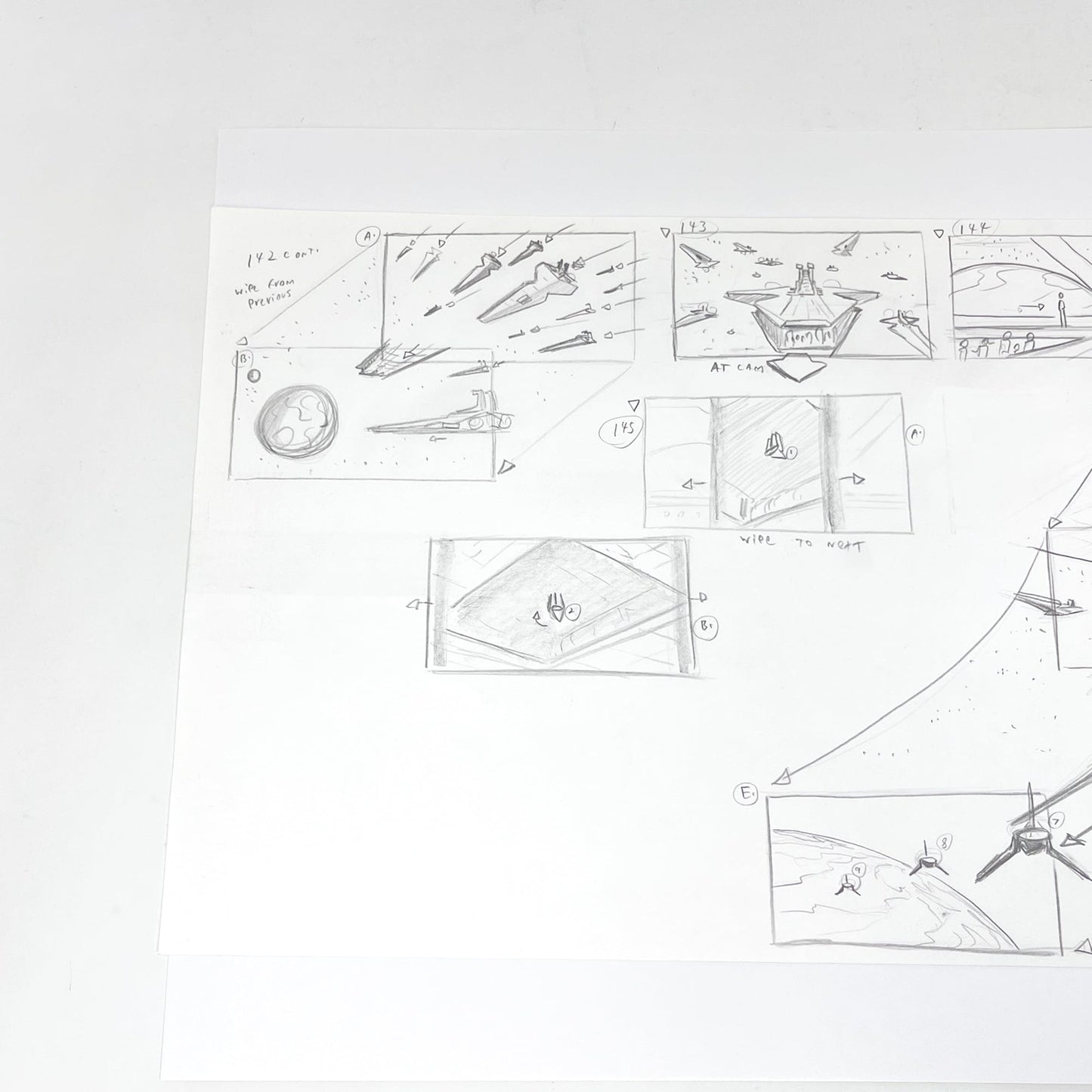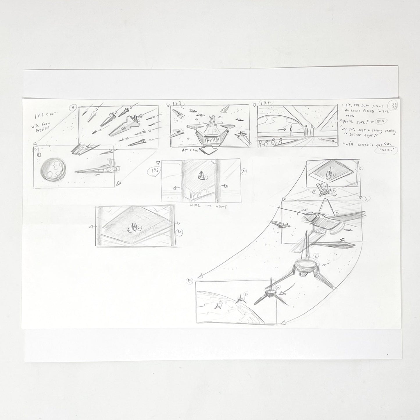 This is an original, hand drawn storyboard from the Genndy Tartakovsky 2D Clone Wars animated series. From the collection of Paul Rudish, Art Director on the series.