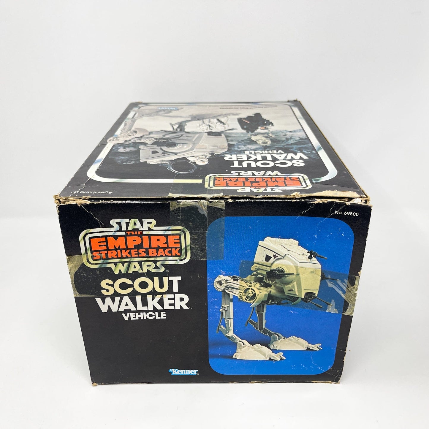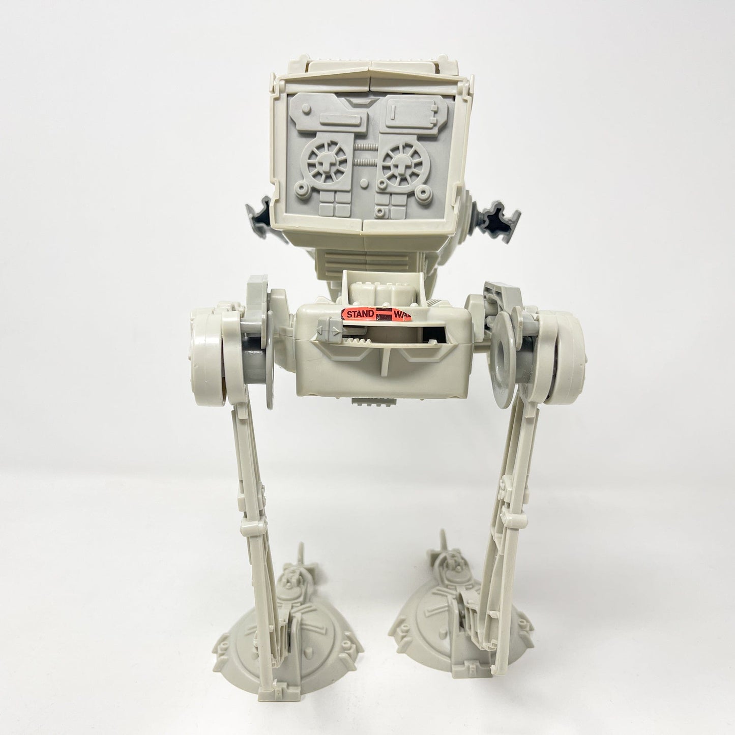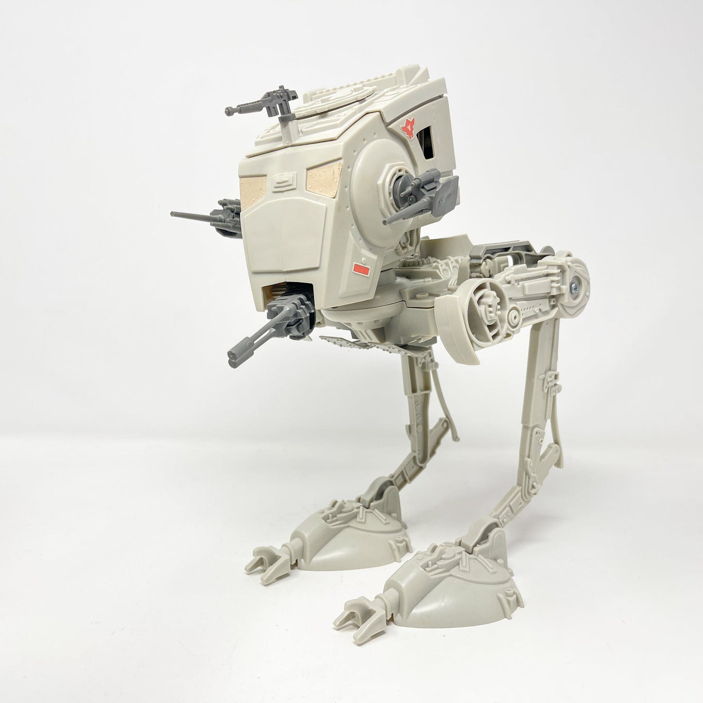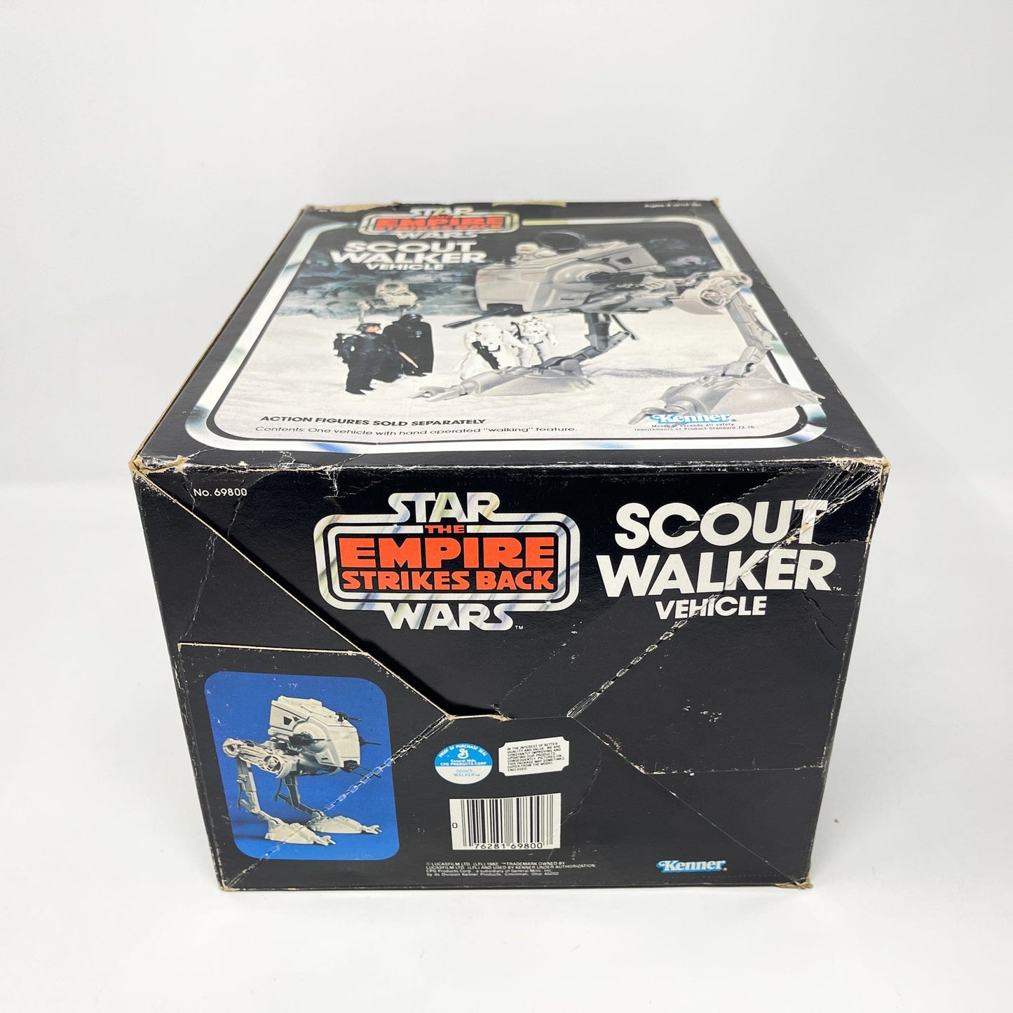 AT-ST in Kenner Empire Strikes Back box. Also known as the Chicken Walker, the toy has a fun walking action when you push the button on the back up and down. AT-ST is complete with top-hatch, top-hatch gun, side and front cannons. Stands without problem. Also includes instruction manual.