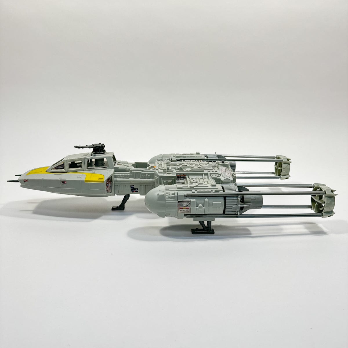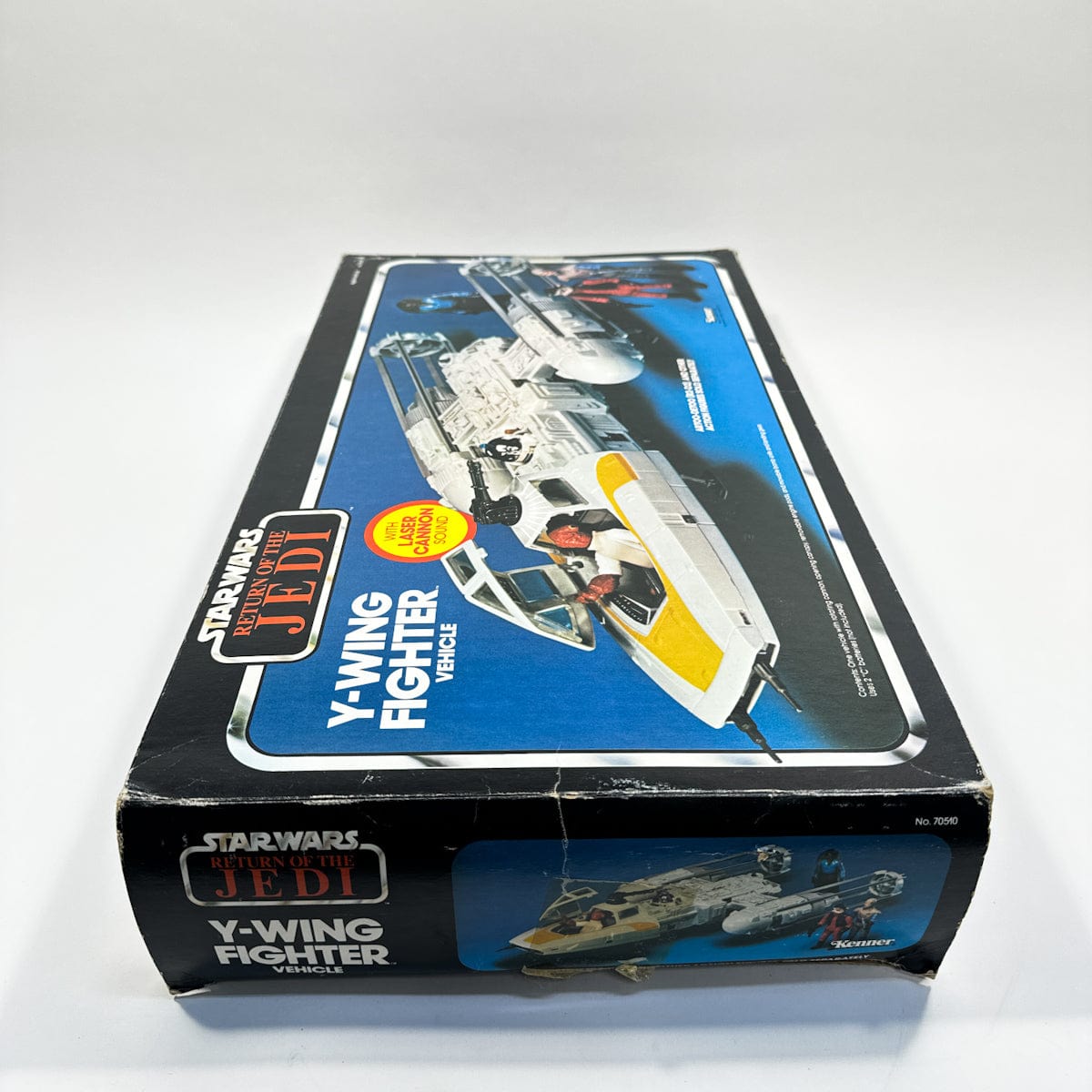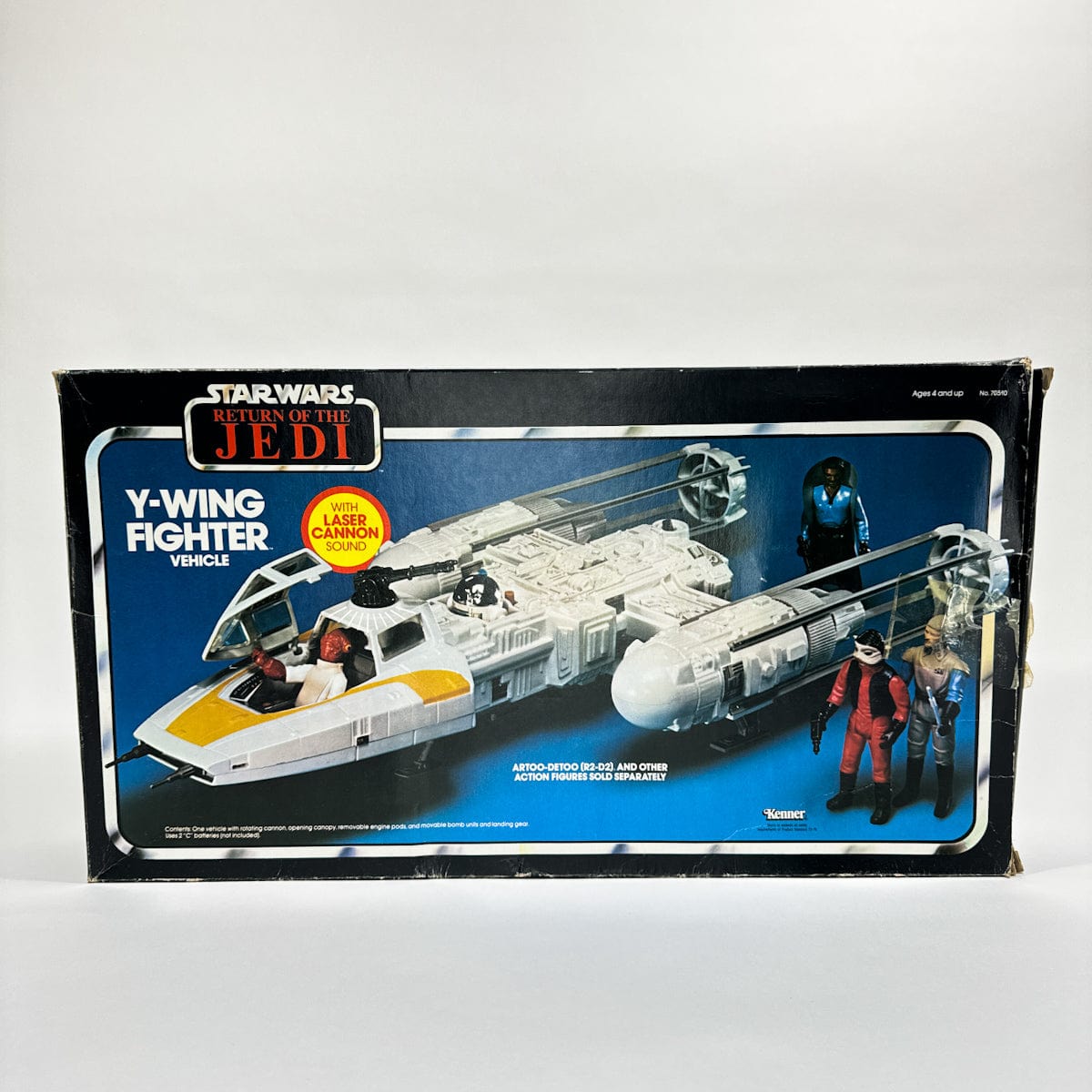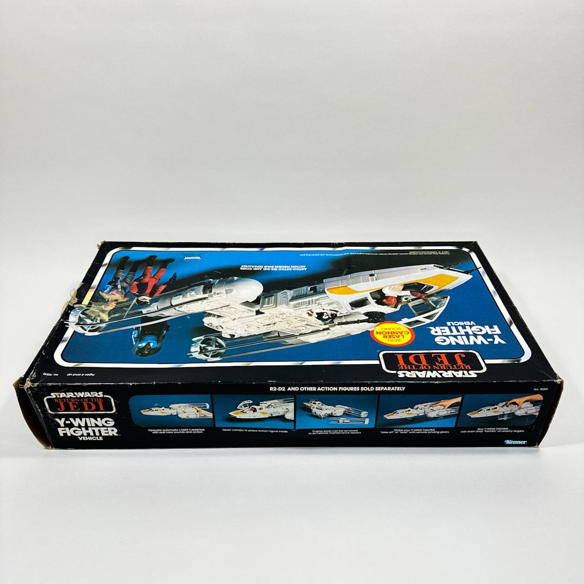 Vintage Kenner Y-Wing toy loose and complete in box. Made by Kenner for Return of the Jedi. This ship has lots of easy to lose parts, but this guy comes complete with all of them including chin guns, top cannon, struts, engines, the bomb (glued together) and working landing gear.