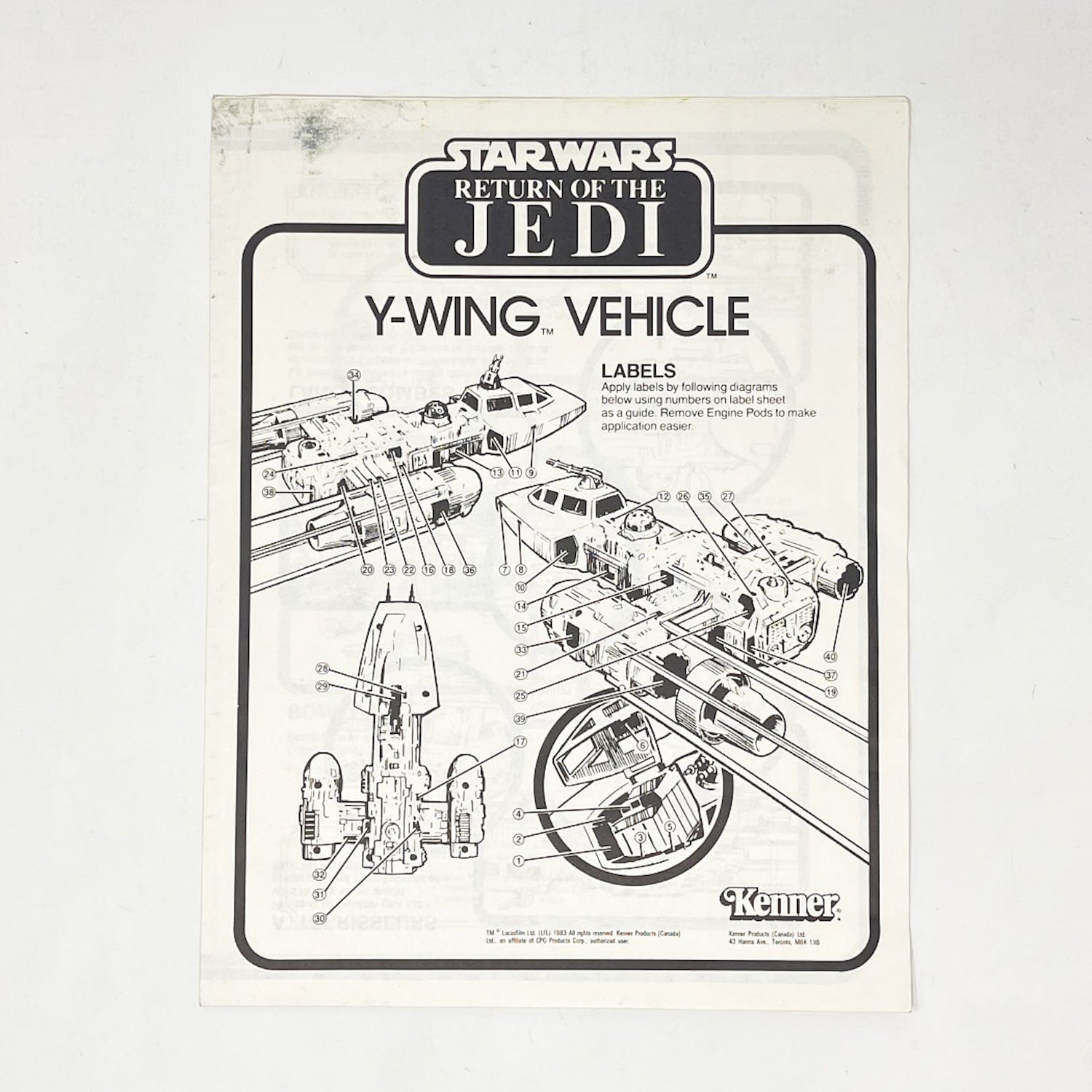 Vintage Kenner Y-Wing Fighter instructions from Return of the Jedi.